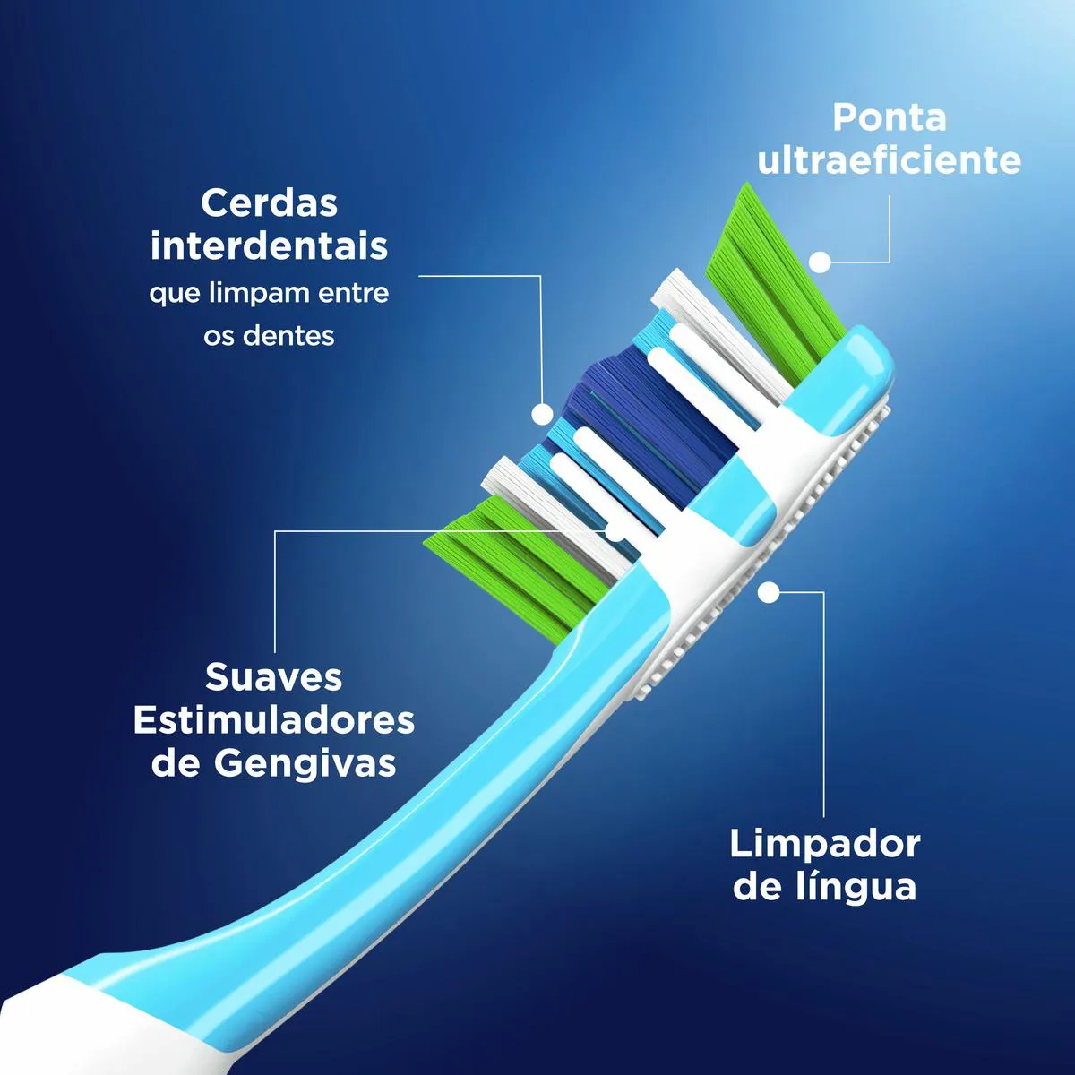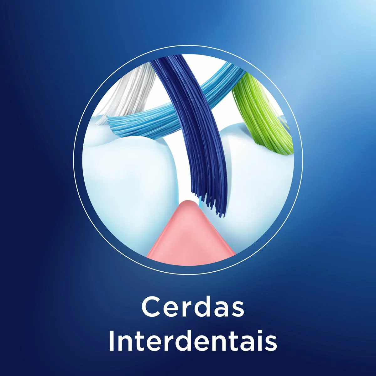 - Facilita a limpeza entre os dentes por meio das cerdas interdentais.