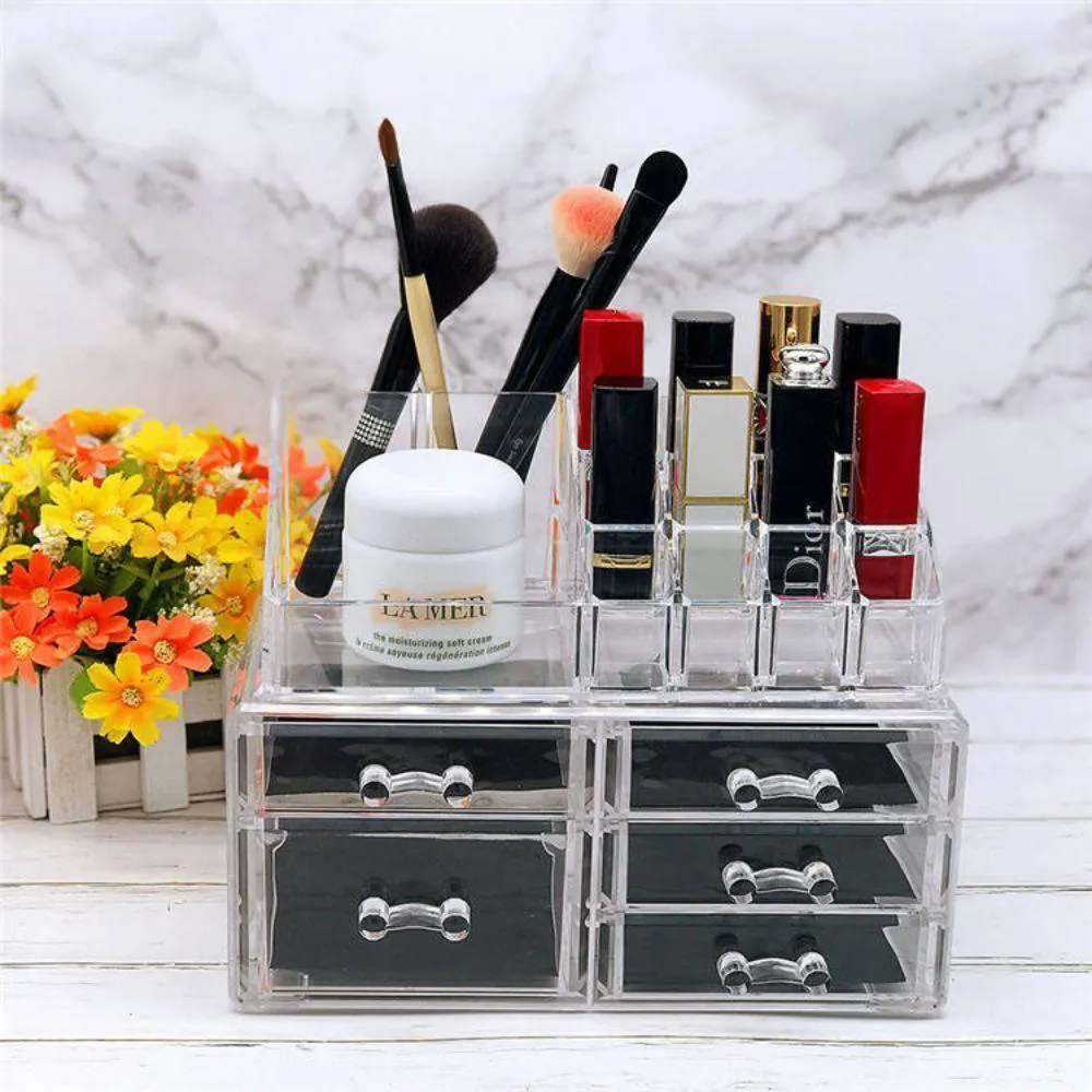 Mantenha suas joias, maquiagem e acessórios sempre organizados com este elegante Porta Maquiagem em Acrílico. Ideal para armazenar batons, pincéis, lápis, esmaltes, cosméticos e muito mais, ele traz praticidade e sofisticação para sua penteadeira ou bancada.