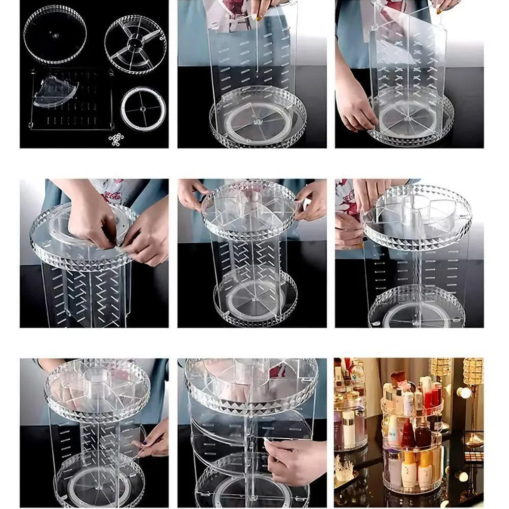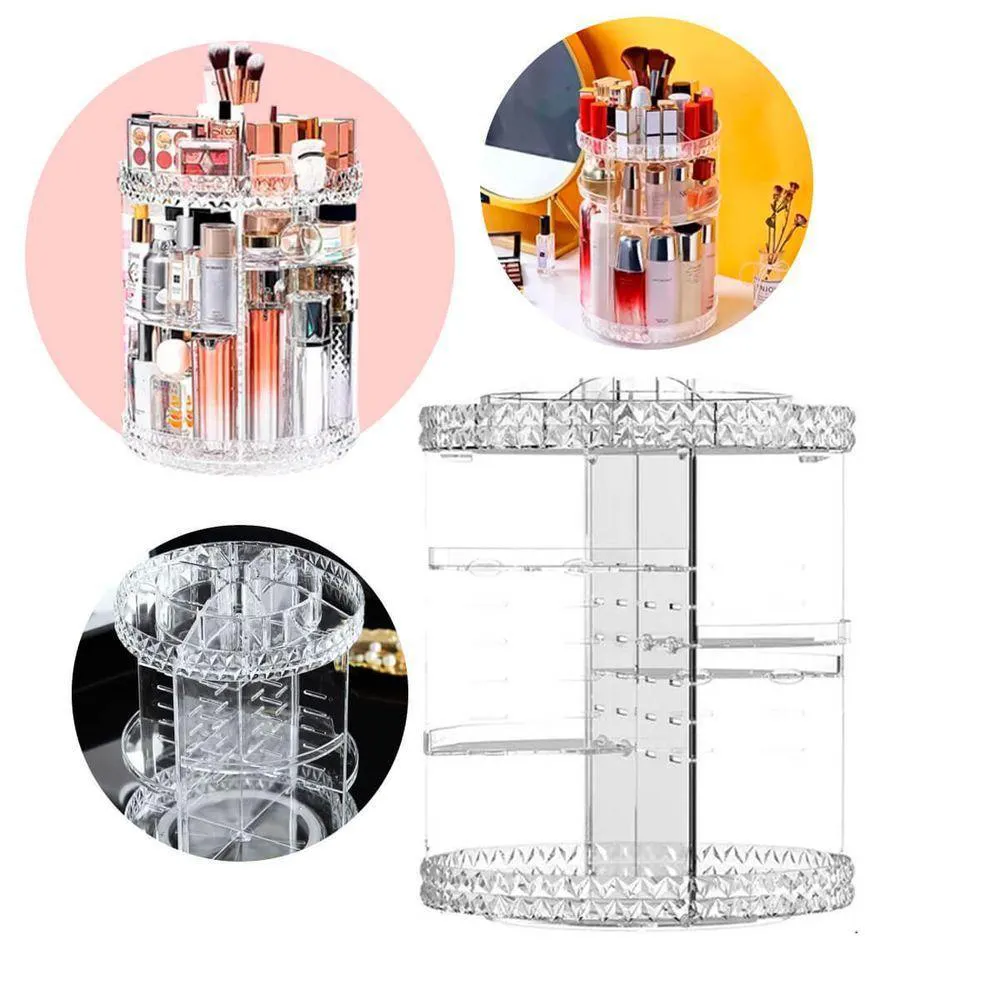 Organizador De maquiagem Giratório 360° Transparente Em Acrílico