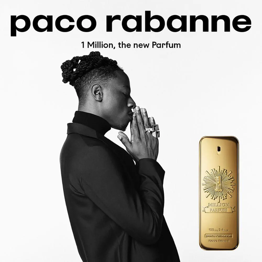 O 1 Million Parfum tem a audácia de um grande perfume de couro. Uma fragrância masculina e intensa, com o poder solar. O perfume ousa nos efeitos dos materiais e brinca com as sensações. Uma dualidade entre pulsação salgada e opulência de couro-solar. Um perfume com calor âmbar para uma sensualidade exacerbada, como a pele aquecida pelo sol.