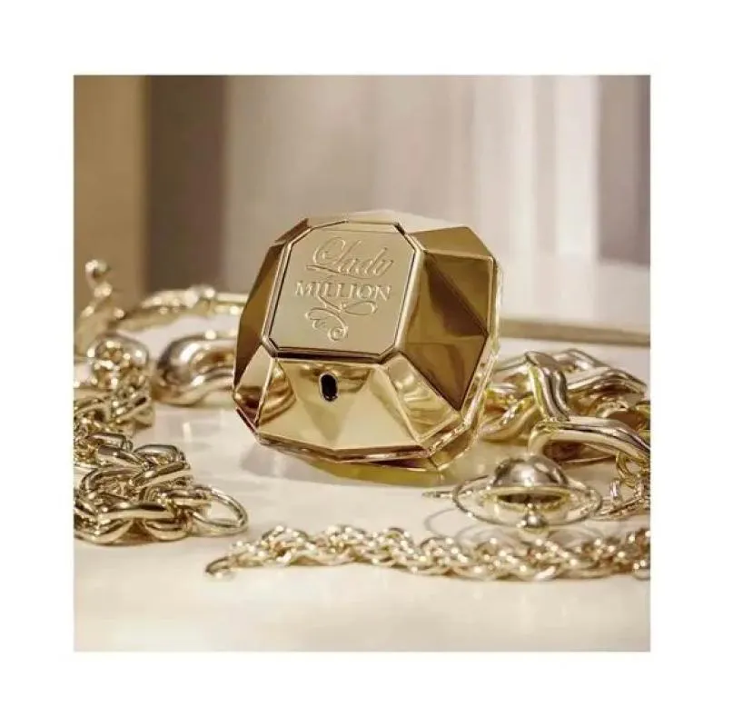 Envolva-se em uma aventura apaixonante com a fragrância de Paco Rabanne Lady Million. Perfeito para uma jovem mulher envolvente, radiosa, de fragilidade aparente, mas possuidora de um caráter incrivelmente sensual e fogoso. Suas notas são uma alquimia misteriosa, um