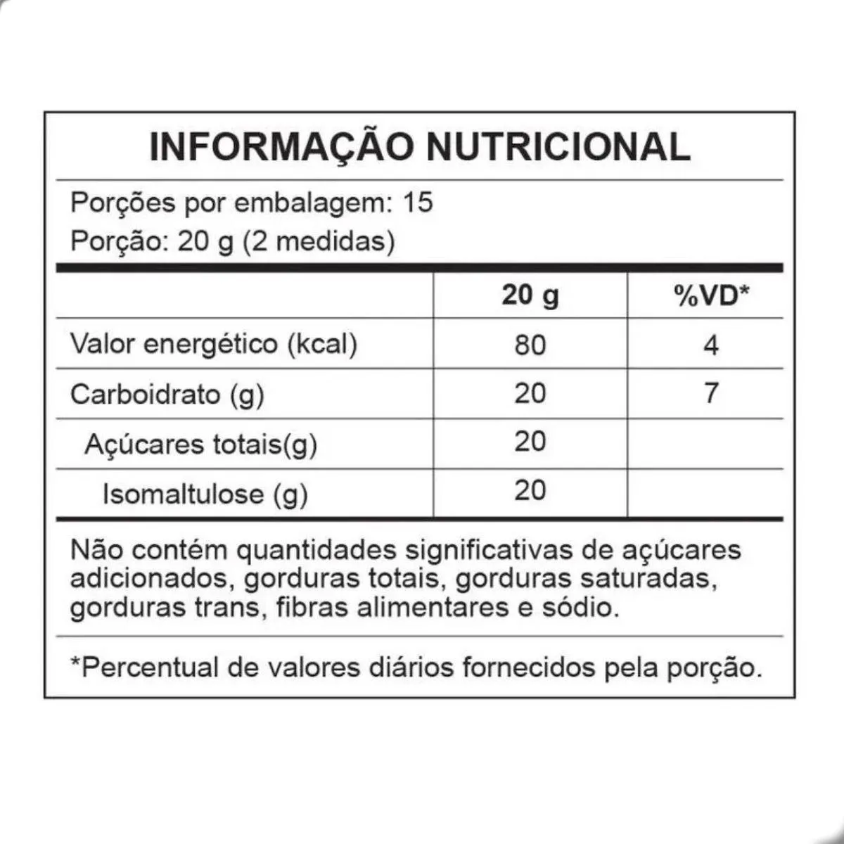 - Fornece energia de forma sustentada através da palatinose, um carboidrato de absorção lenta.