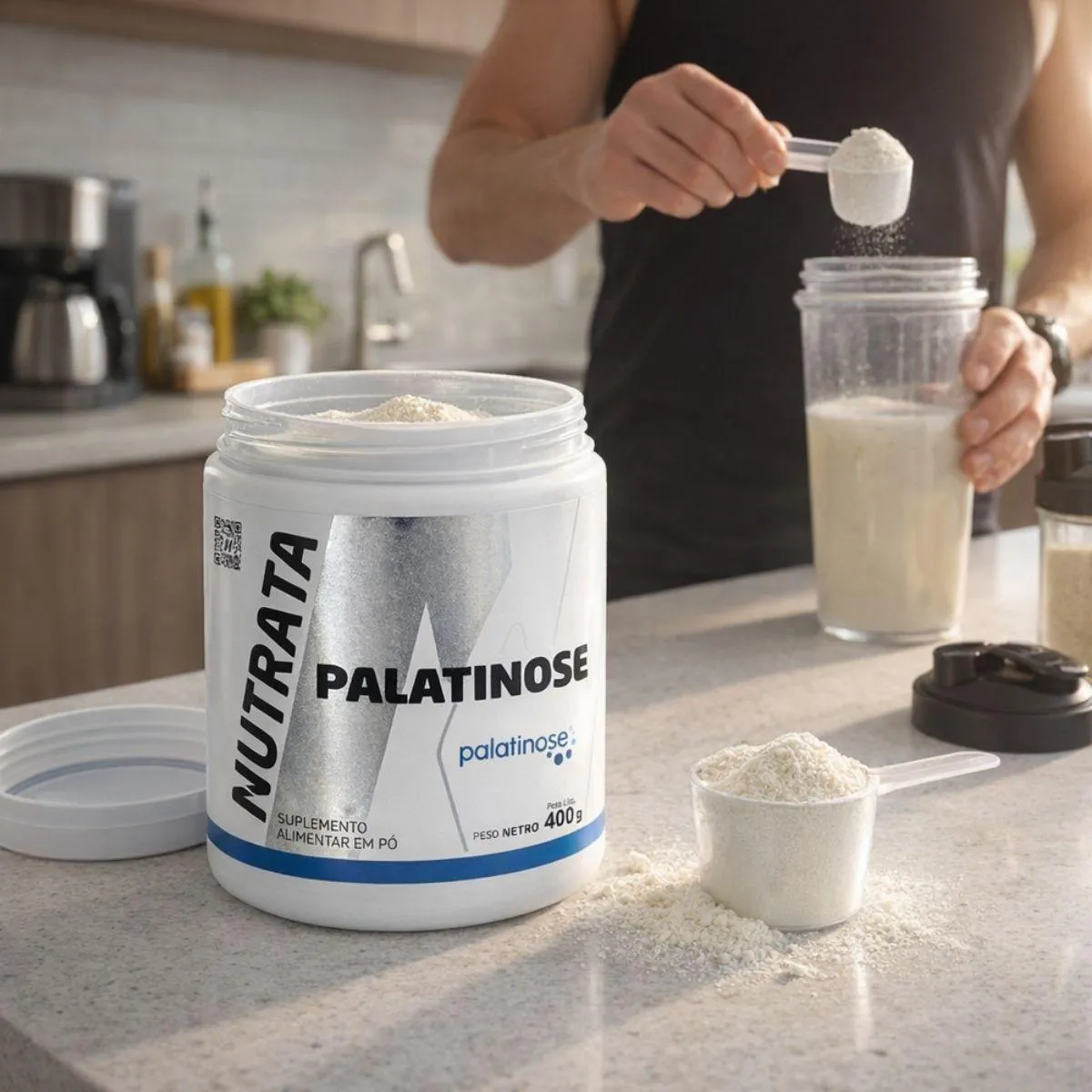 Palatinose Pote 400g Nutrata palatinose em pó (isomaltulose), pote de 400 g, carboidrato de baixo índice glicêmico.