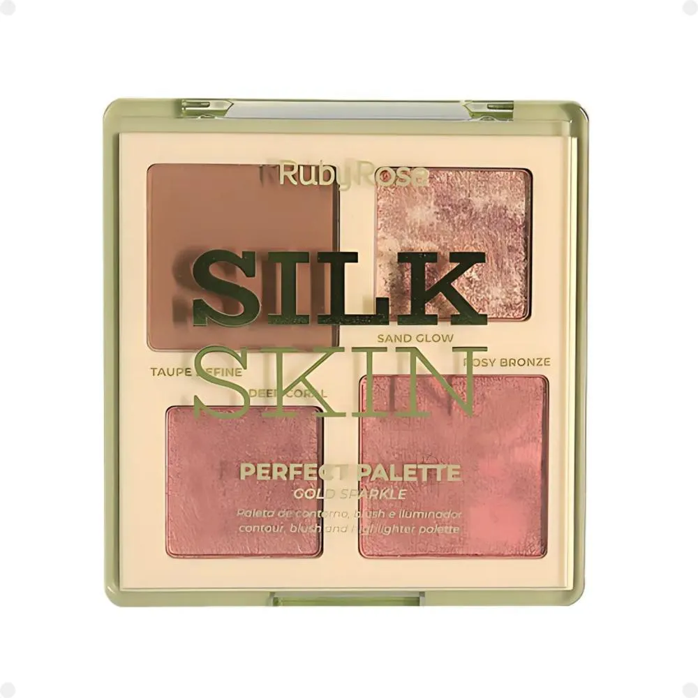 Paleta de Contorno, Blush e Iluminador Ruby Rose Silk Skin Perfect Palette Gold Sparkle