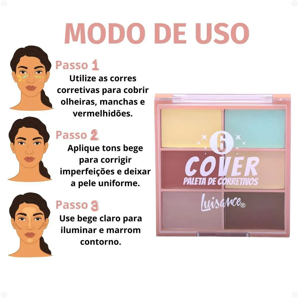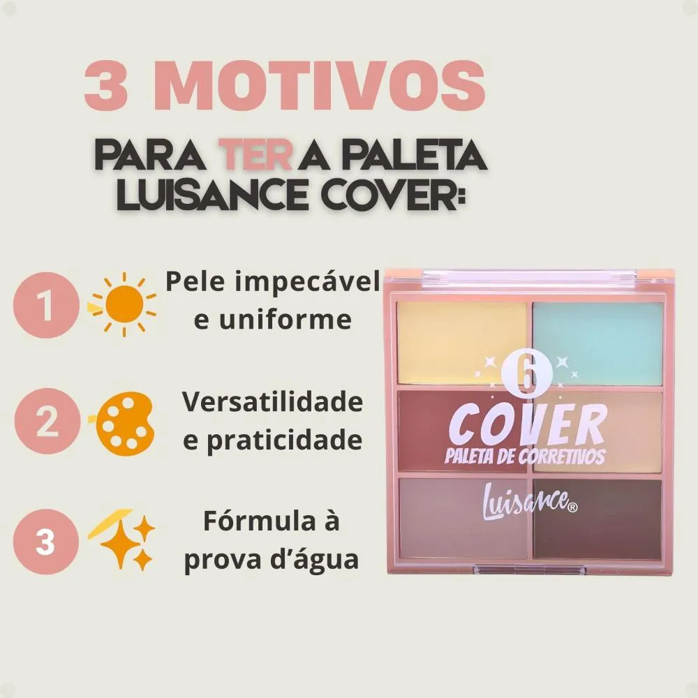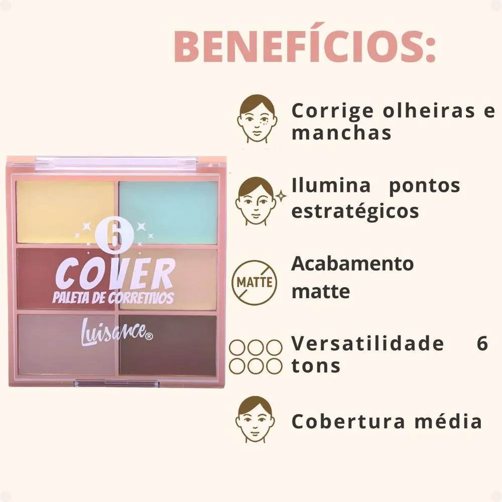 Paleta de Corretivo Luisance Cover 6 Ref.l3233 é o seu segredo para uma pele impecável. Desenvolvida para, como o próprio nome sugere, corrigir imperfeições e iluminar pontos estratégicos, esta paleta versátil da