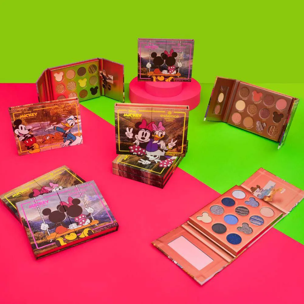 A paleta de sombra Essence apresenta doze tons em uma embalagem super fofa inspirada no Mickey e Amigos.