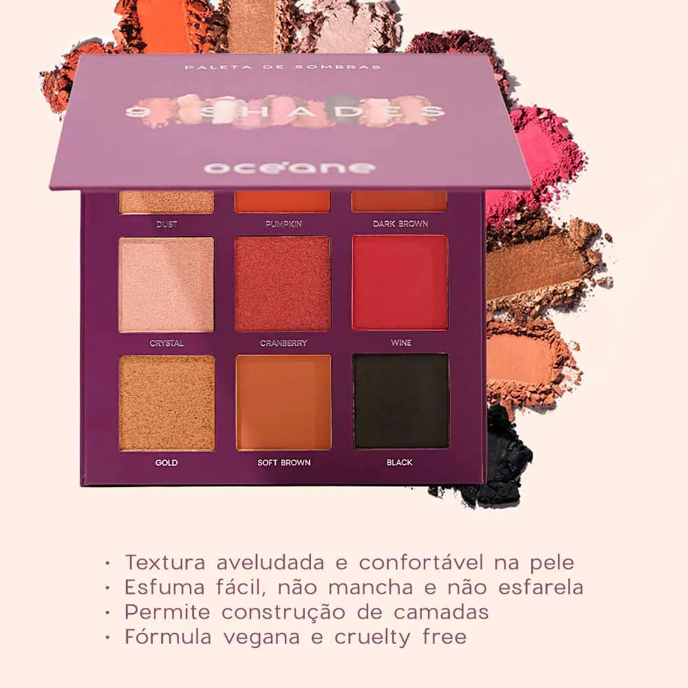 A Paleta de Sombras Océane - 9 Shades é a escolha perfeita para quem busca versatilidade e sofisticação em seus looks de maquiagem.