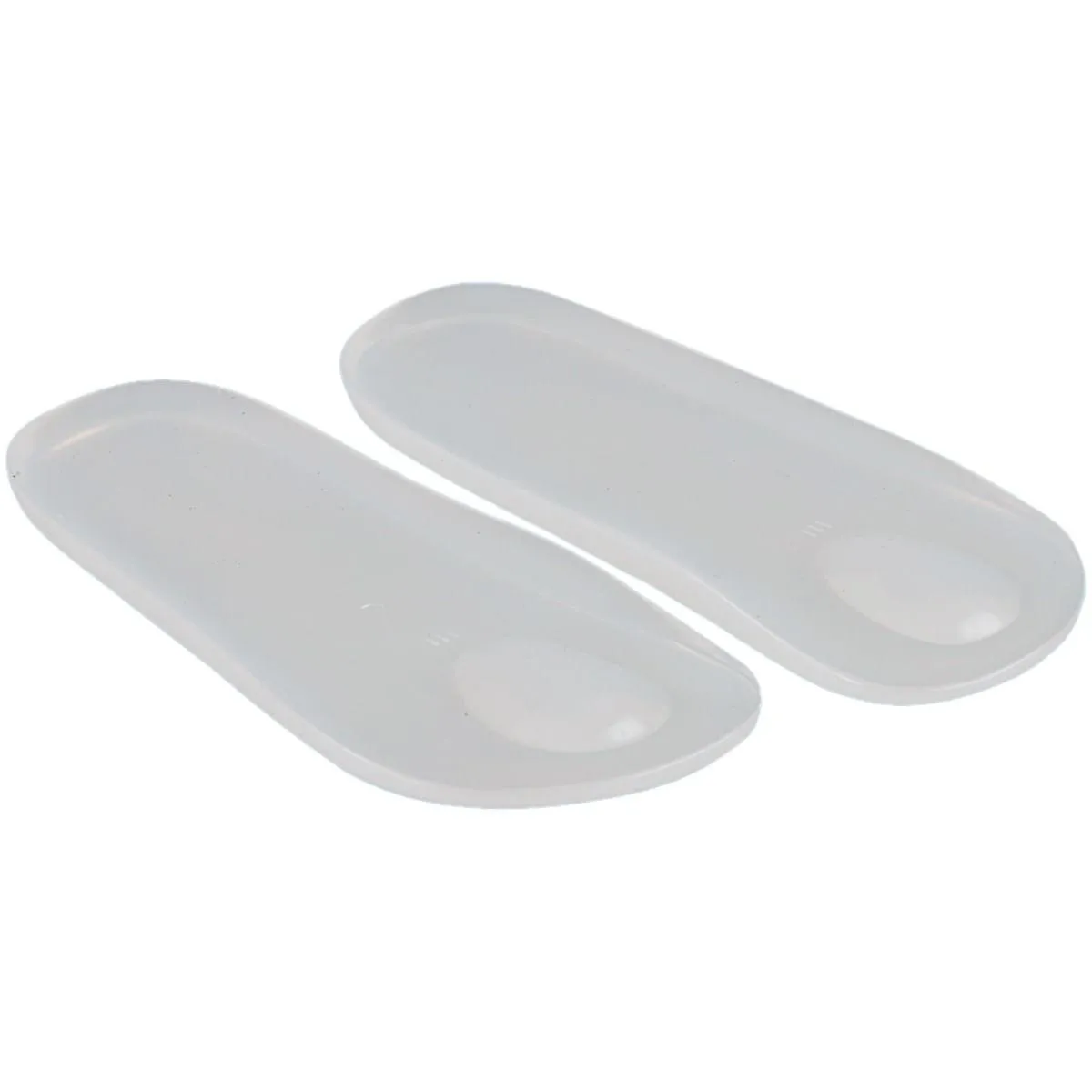 A Palmilha 3/4 Siligel, possui arco plantar brando que respeita anatomia do pé e proporciona incrível sensação de conforto e descanso. Sua ogiva retro capital age como alavanca natural que protege e evita o contato da superfície com os metatarsos, dando dessa forma, uma nova dinâmica e marcha ao caminho do usuário. Projetada para metatarsalgia, fascite plantar e absorção de impacto. Possui elevação do arco e piloto para metatarsos. Fabricadas com Q.S.P. 100% silicone sua formulação tem características específicas, o que confere sua indicação na ortopedia e traumatologia.Indicações