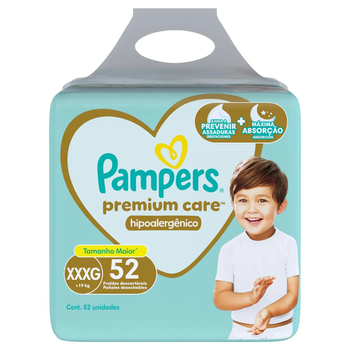 Pampers Premium Care é ideal para que a pele do seu bebê fique sempre como pele de bebê, oferecendo máxima absorção de Pampers e uma exclusiva loção hipoalergênica, a Pampers Premium Care ajuda a prevenir assaduras. Além disso, é suave como o algodão e ultra respirável. Não contém fibras de algodão
