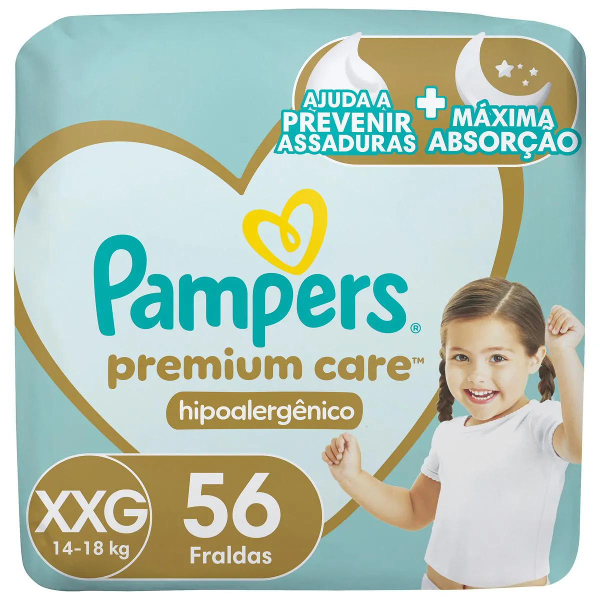 A Pampers Premium Care é uma fralda descartável que possui laterais com ajuste cômodo e flexível, que acompanham o movimento da criança.