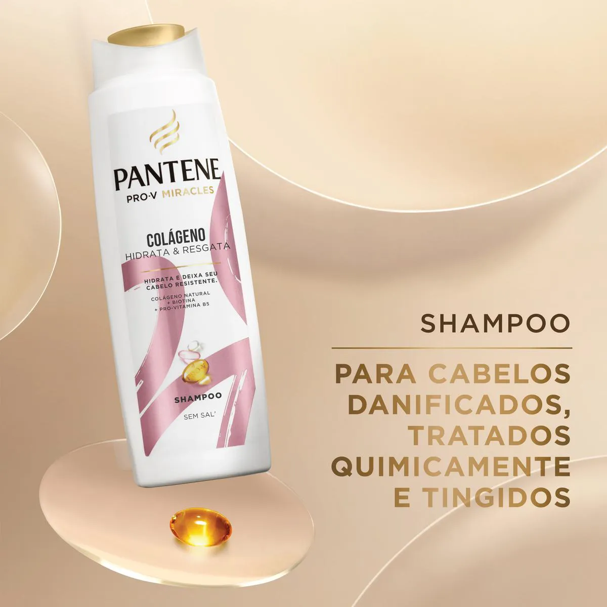 Shampoo Pantene Pro-V Miracles Colágeno Hidrata & Resgata é um shampoo com Colágeno 100% natural, inspirado nos benefícios mais renomados do mundo junto ao poder da Pro-vitamina B5, ideal para auxiliar na nutrição capilar da raiz até as pontas.