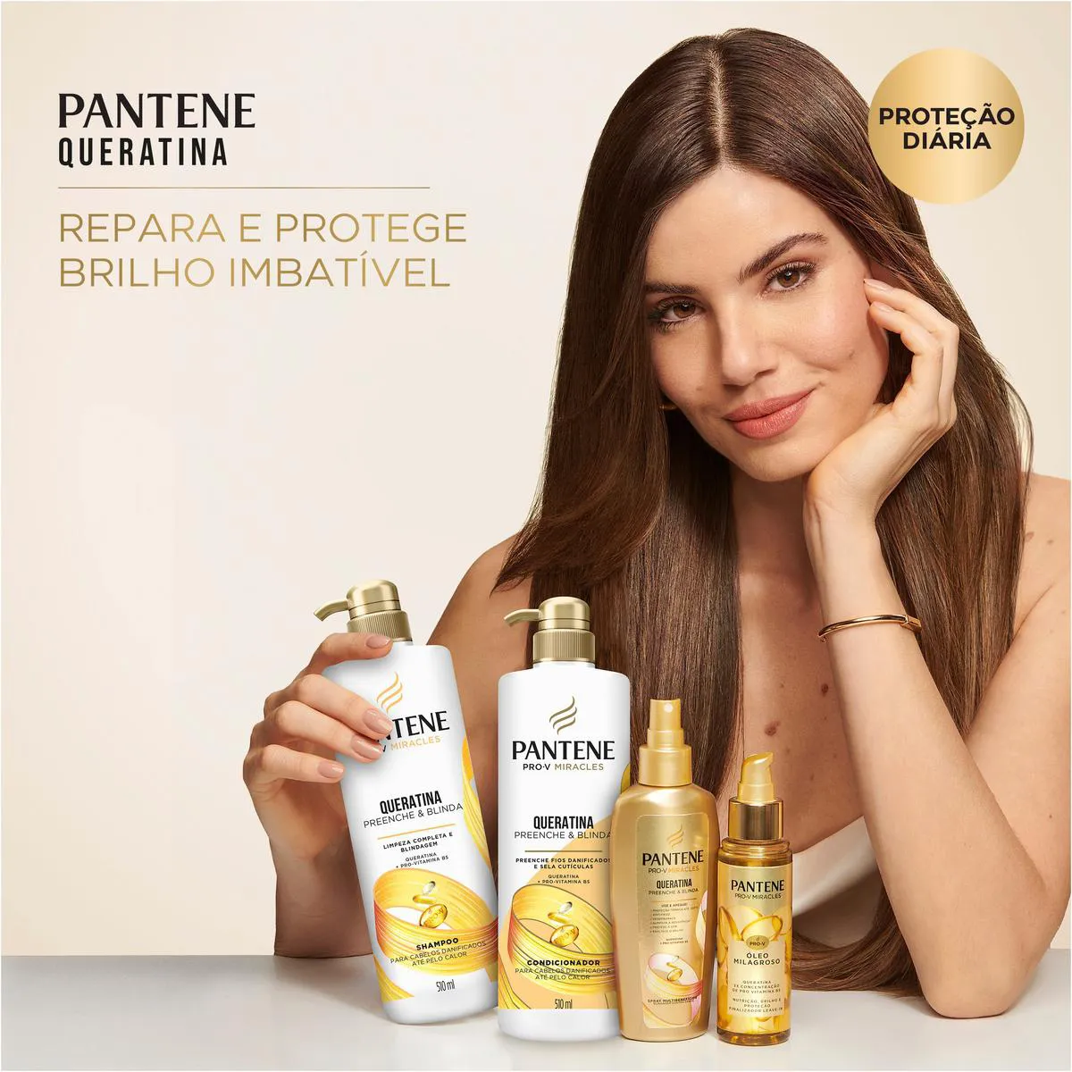Ideal para cabelos cabelos danificados pelo calor, a nova linha Pantene Queratina Preenche & Blinda contém fórmula Pro-V Miracles com Queratina e Pró-Vitaminas B5 que faz uma reparação contra danos.