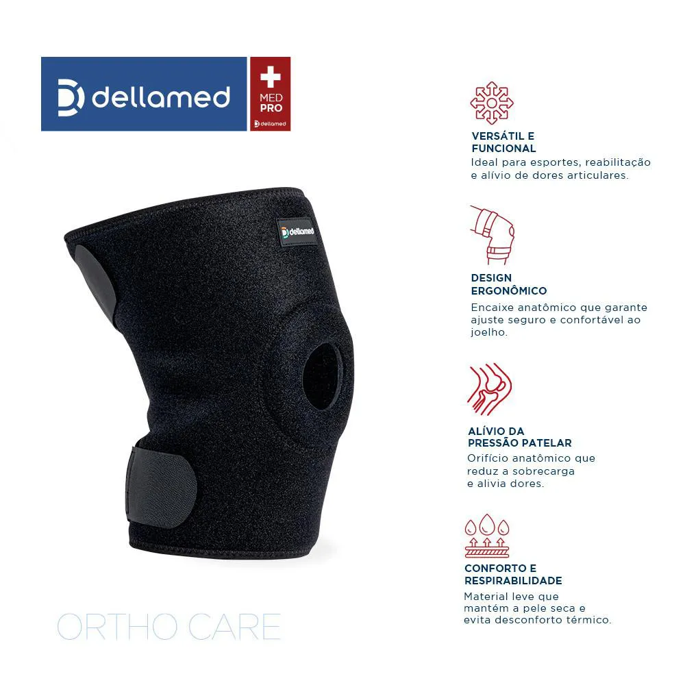 Joelheira Ajustável com Orifício e Reforço Patelar Ortho Care Dellamed
