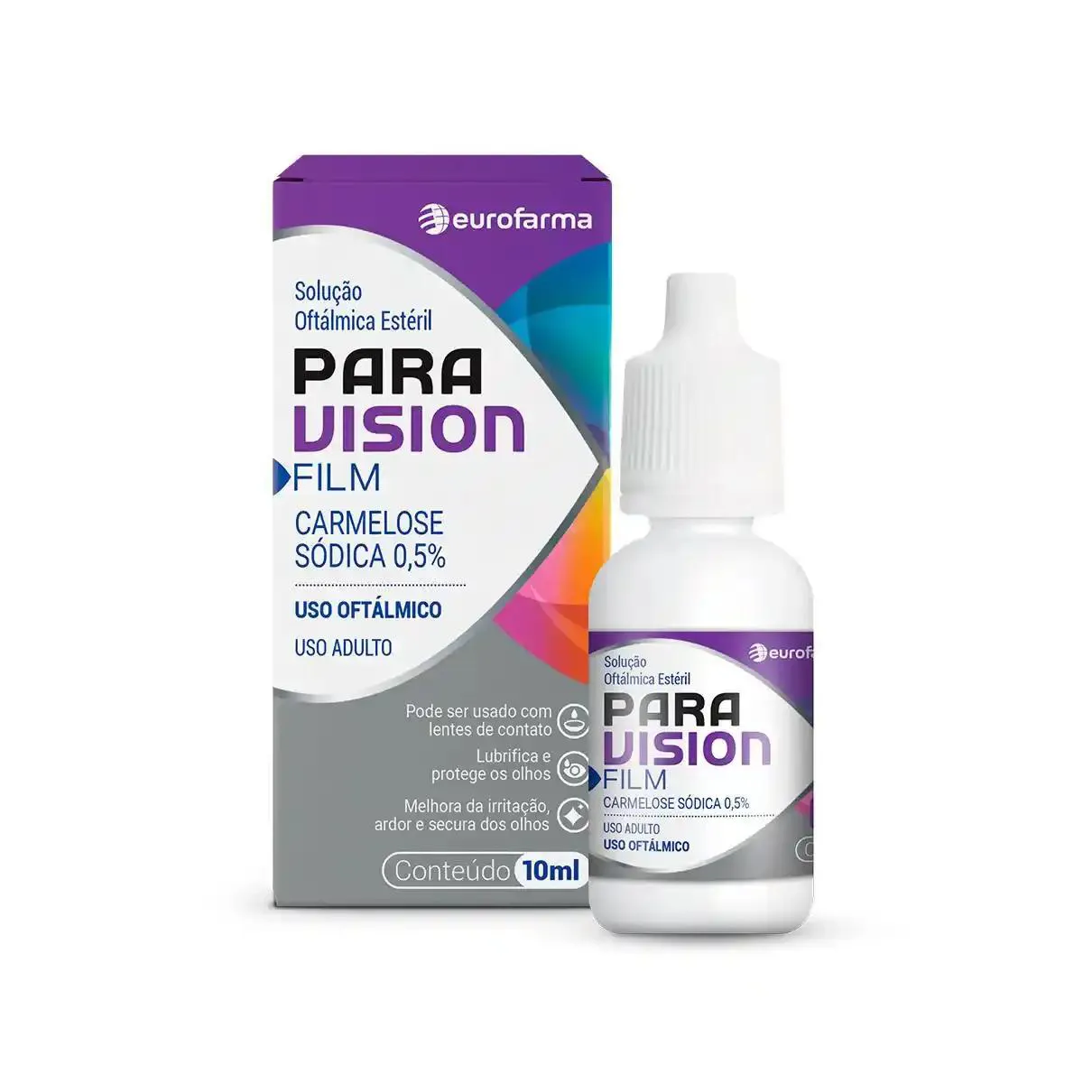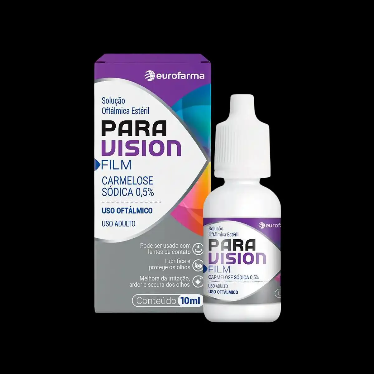 Paravision Film Solução Oftálica 10ml - EurofarmaComposição: Contém: carmelose sódica, ácido bórico, borato de sódio decahidratado, cloreto de cálcio, di-hidratado, cloreto de magnésio hexahidratado, cloreto de potássio, cloreto de sódio, cloreto polidrônio, ácido clorídrico (1 mol/L). hidróxido de sódio (1mol/L), água para injetáveis.