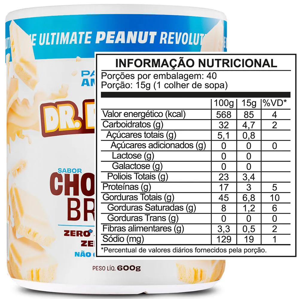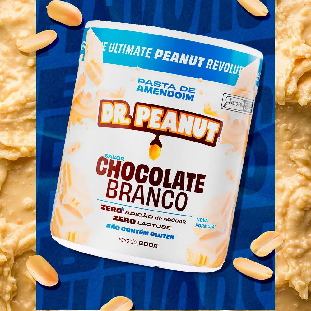 PASTA DE AMENDOIM COM WHEY PROTEIN - ZERO LACTOSE - (600G) - DR PEANUT OFICIAL Chocolate Branco