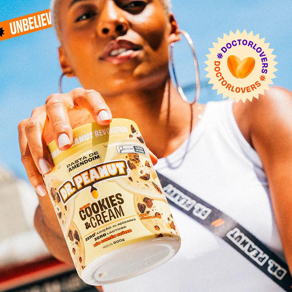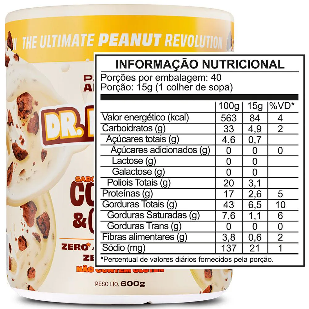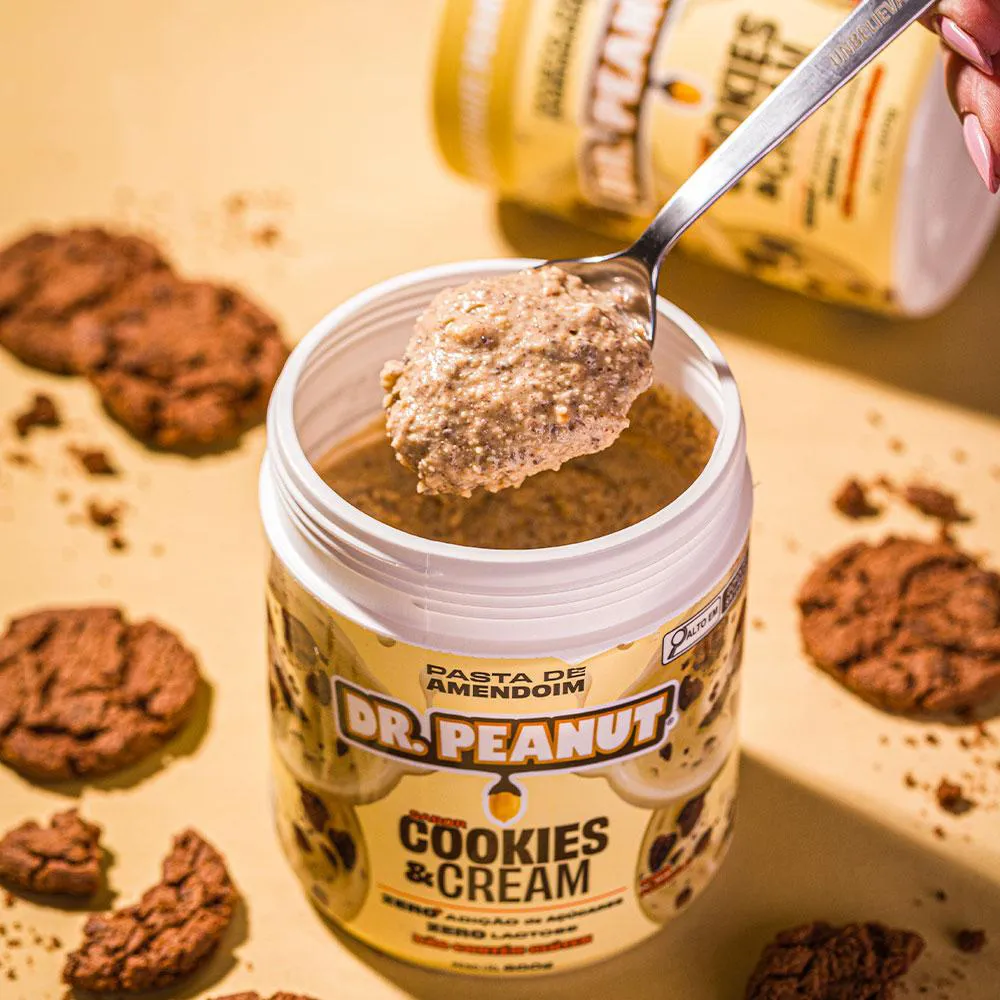 PASTA DE AMENDOIM COM WHEY PROTEIN - ZERO LACTOSE - (600G) - DR PEANUT OFICIAL Cookies E Cream