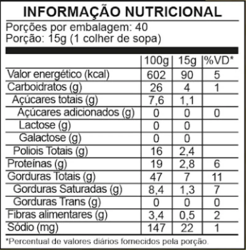 - Sem adição de açúcares e sem glúten;