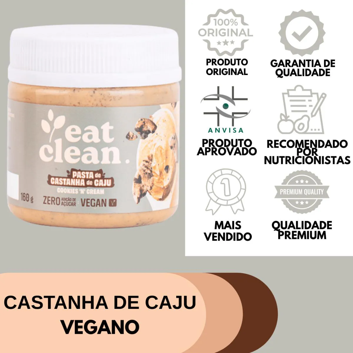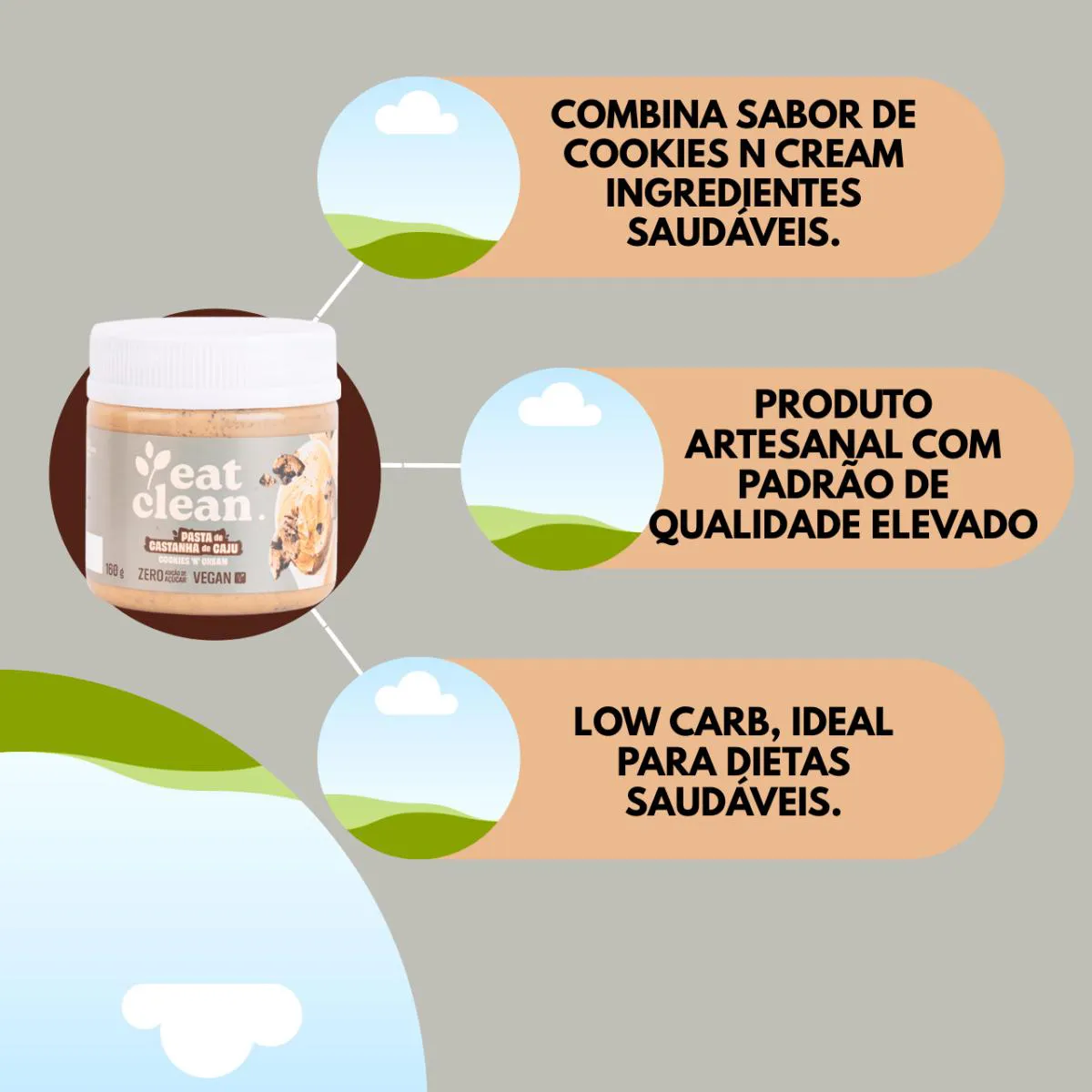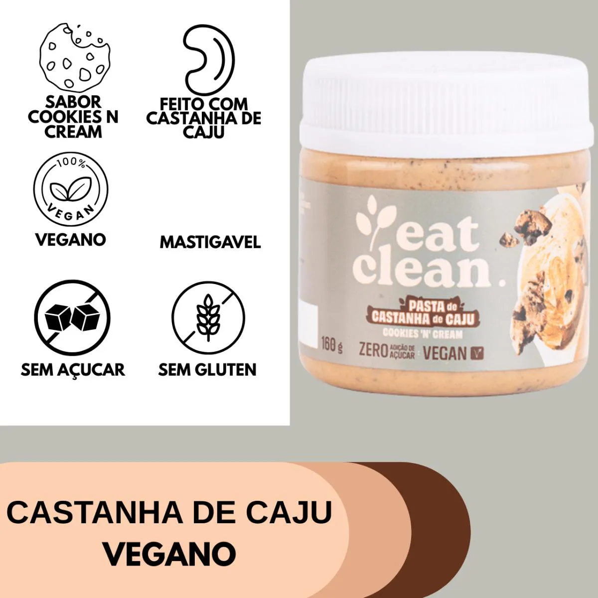 Pasta de Castanha de Caju Cookies N Cream Eat Clean 160G Zero Açúcar Proteica Saudável