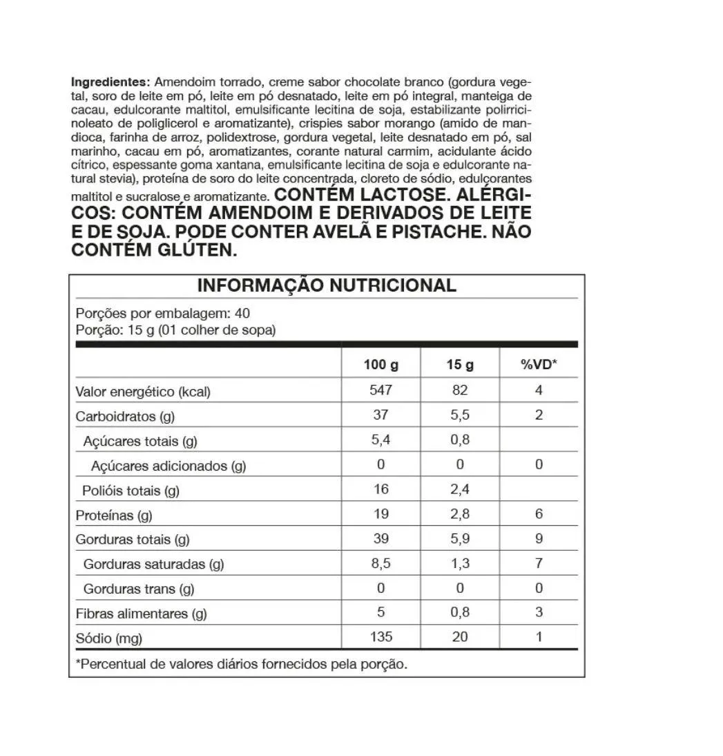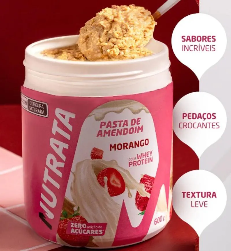 SABOR, ENERGIA E PROTEINA EM CADA PORÇÃO Pasta de amendoim com whey protein de alta qualidade, sem adição de açúcar, textura leve e cremosa, pedaços crocantes e sabor irresistível. Deliciosa como só a Nutrata consegue fazer! DIFERENCIAIS Sabores incríveis; Pedaços crocantes; Textura leve; Com whey protein; Sem adição de açúcar; 0 gordura trans; Livre de acessulfame de potássio. COMO USAR A PASTA DE AMENDOIM NUTRATA? Enriqueça o sabor de pães e torradas; Adoce suas frutas com muita cremosidade; Experimente pura para dar energia ou matar a vontade de um docinho. QUANDO USAR A PASTA DE AMENDOIM NUTRATA? No café da manhã, para começar o dia com mais sabor e disposição; No meio da tarde, para um lanche delicioso e proteico; Antes do treino, para dar aquele gás a mais; Sempre que der vontade de comer algo gostoso e nutritivo.