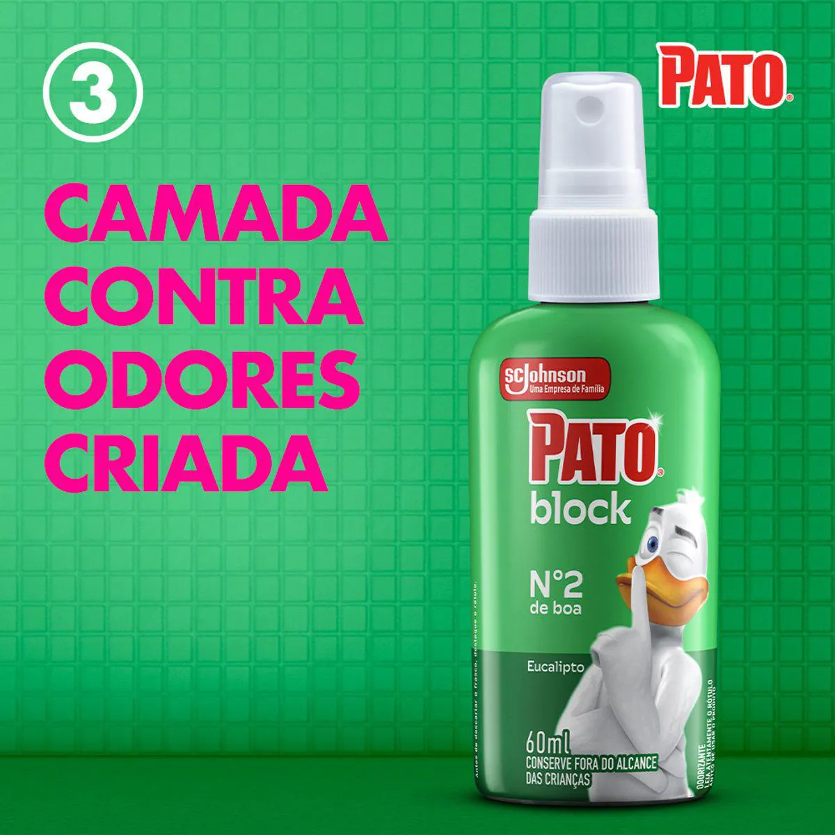 O Pato Block é um odorizador sanitário líquido em spray desenvolvido para bloquear odores indesejáveis no vaso sanitário antes mesmo que eles apareçam. O produto atua diretamente na superfície da água do vaso, criando uma barreira contra maus odores.