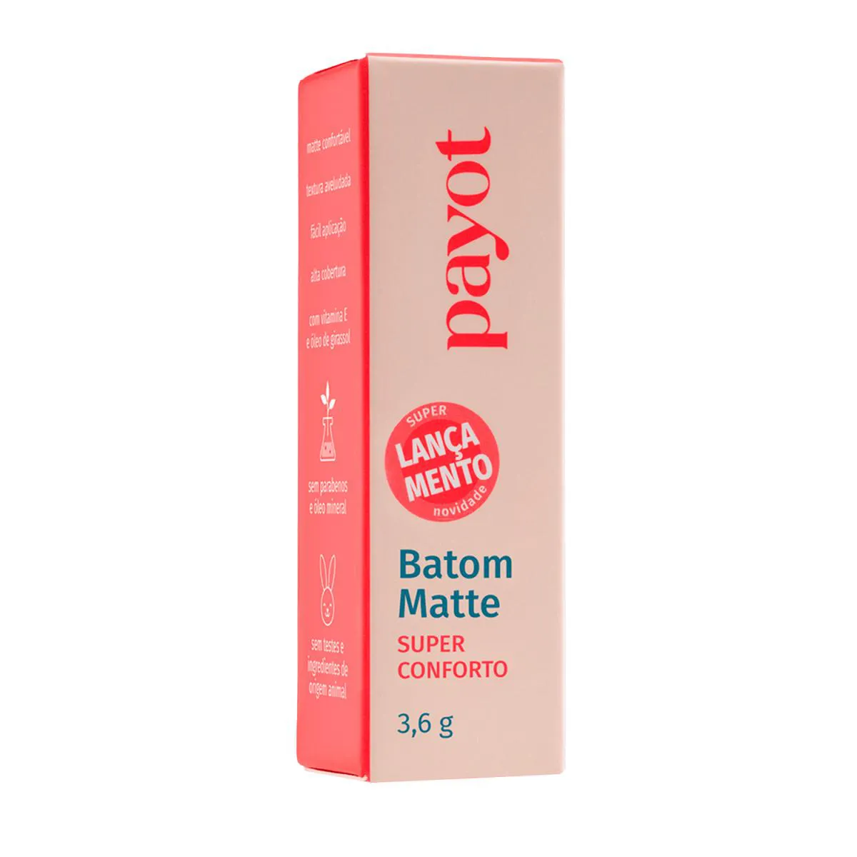 - Matte conforável- Textura aveludada- Fácil aplicação- Alta cobertura- Com vitamina E e óleo de girassol- Sem parabenos e óleo mineral- Sem testes em animais e sem ingredientes de origem animal