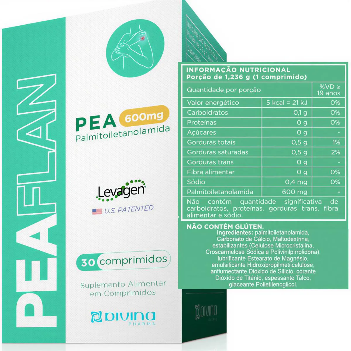 Peaflan Pea 600Mg Palmitoiletanolamida Levagen com 30 Comprimidos - Divina Pharma