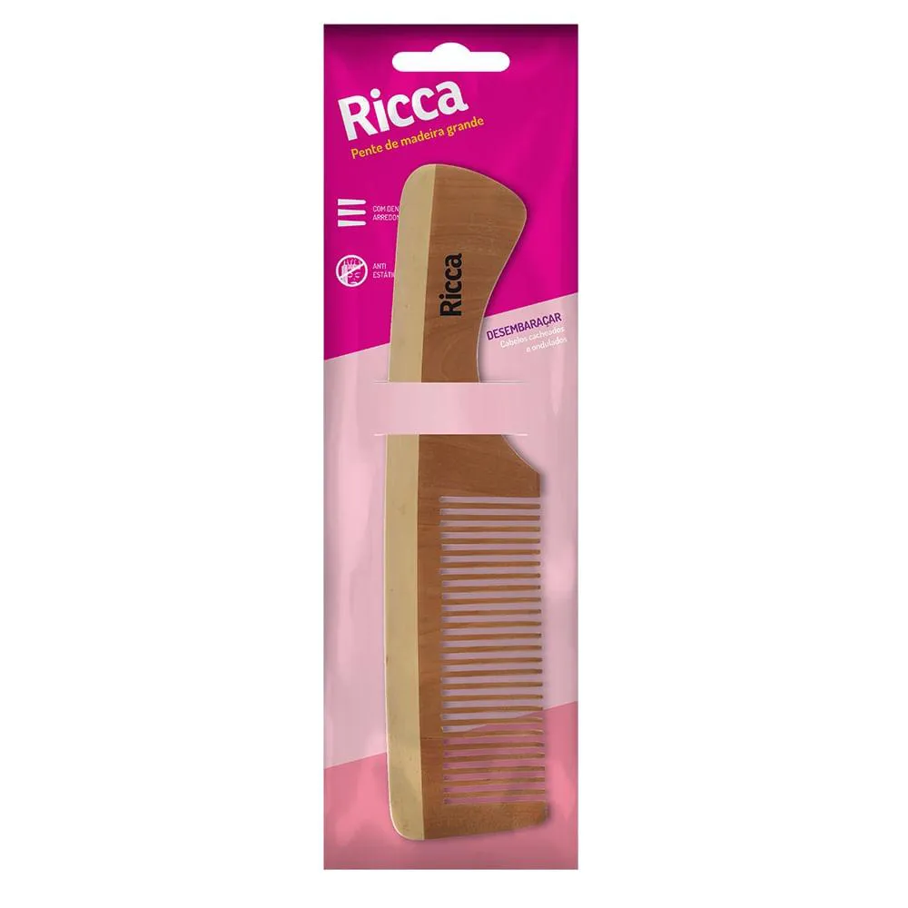 O Pente De Madeira Grande Ricca é um acessório de cabelo fabricado em madeira, projetado para pentear, desembaraçar e organizar os fios de forma delicada. Seu design grande permite uma distribuição uniforme de produtos capilares, reduz o estresse nos cabelos durante a escovação e ajuda a evitar quebras, sendo ideal para todos os tipos de cabelo.