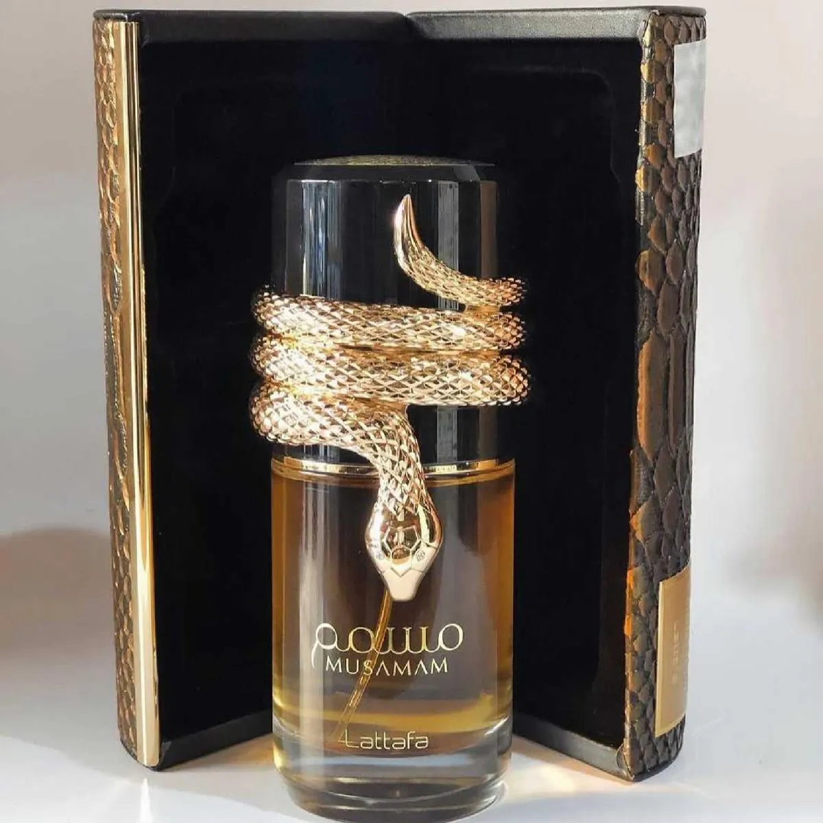 Musamam de Lattafa perfumes é um perfume Amadeirado Aromático Compartilhável lançada em 2022. Este perfume é uma combinação harmoniosa de notas orientais e florais, complementadas por toques amadeirados, criando uma experiência olfativa rica e envolvente. Musamam é perfeito para aqueles que procuram uma fragrância elegante e duradoura, adequada para qualquer ocasião, desde eventos formais até encontros casuais. Pirâmide Olfativa
