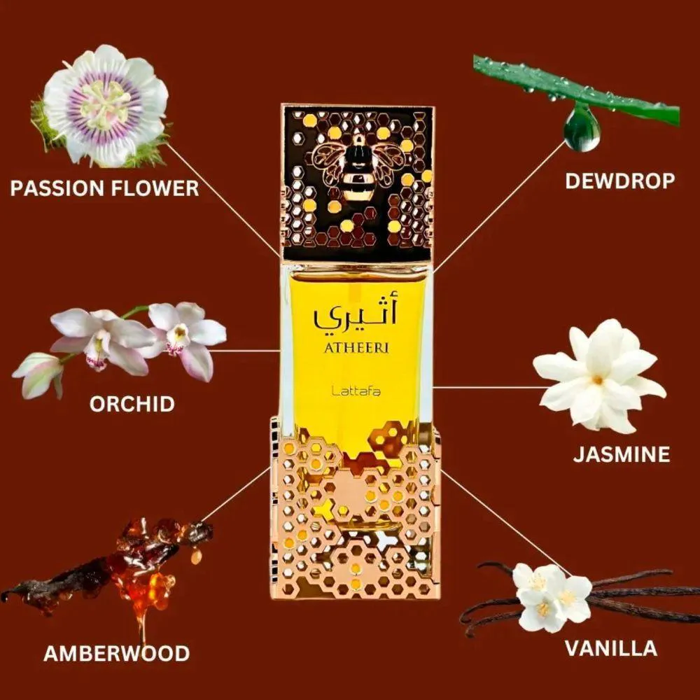 Perfume Atheeri Lattafa Eau de Parfum Unissex 100 ml é uma fragrância que irradia delicadeza e sofisticação. Inspirada na luminosidade etérea do amanhecer em um jardim, ela equilibra frescor floral com um toque gourmand suave, perfeita para quem busca uma assinatura olfativa elegância e acolhedora.A abertura revela notas de flor de maracujá entrelaçadas a uma gota de orvalho, criando um frescor translúcido e levemente frutado, como uma brisa suave que desperta os sentidos de forma refinada.No coração, um buquê floral de orquídea e jasmim floresce com elegância e graça. Essa combinação traz feminilidade e um acorde cremoso que envolve com sofisticação, sem perder leveza.Por fim, a base se revela acolhedora e refinada, com nuances de baunilha cremosa e madeira de âmbar. Essa fusão quente e resinada oferece excelente fixação e um rastro memorável, tornando Atheeri uma escolha versátil para o dia ou para eventos especiais, com presença marcante e delicada.Notas Olfativas:Notas de Topo: Flor de Maracujá e Gota de Orvalho.Notas de Coração: Orquídea e Jasmim.Notas de Fundo: Madeira de Âmbar e Baunilha.*Imagens Meramente Ilustrativas.*As cores do produto podem variar de acordo com o monitor, a iluminação do ambiente e a sua percepção visual.*Verifique nossas políticas internas para que não haja nenhuma dúvida no processo de entrega ao finalizar a compra.
