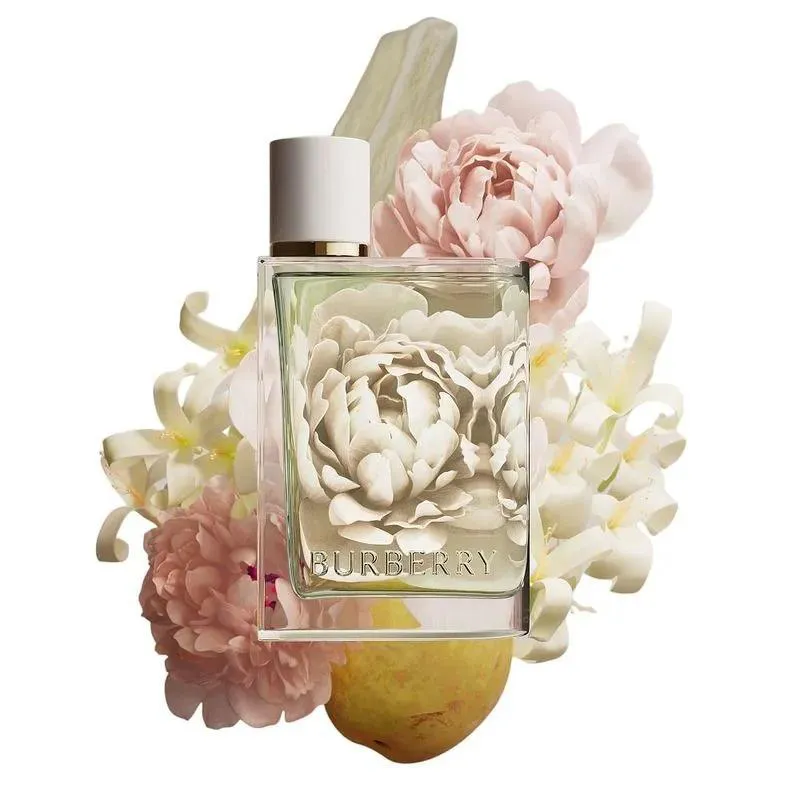 Burberry Her Eau de Toilette, o perfume de espírito livre de Burberry. Uma fragrância gourmand que equilibra alegres notas frutadas sobre uma secagem viciante. Para a mulher moderna ousada que adora aventuras. Essa fragrância é uma mistura divertida de peônia em flor, notas de saída de pêra verde, morango, groselha preta e pimenta rosa.