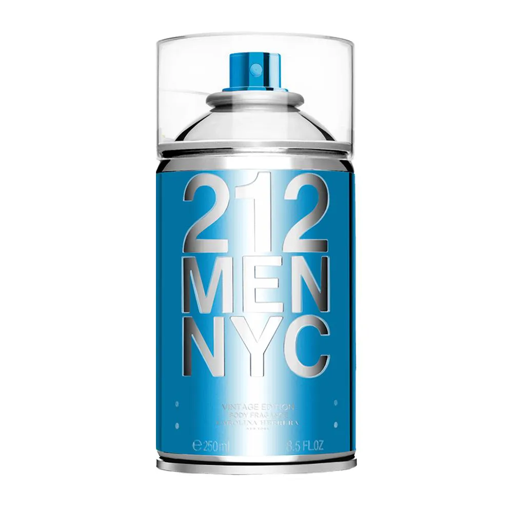 A marca Carolina Herrera, buscando revigorar a essência da emblemática coleção 212, volta a nos deslumbrar com o 212 Men Body Spray. É um spray corporal que se une ao universo 212 e encanta pelo seu novo frasco prático, dinâmico e ultramoderno. São 250ml de perfume dentro de um frasco de design único idêntico a um spray de grafite. Ao sacudi-lo, é possível escutar o barulho da bolinha metálica no interior como numa lata de grafite. As essências das notas aromáticas frescas desse perfume combinam com a diversão e jovialidade de um Body Spray.