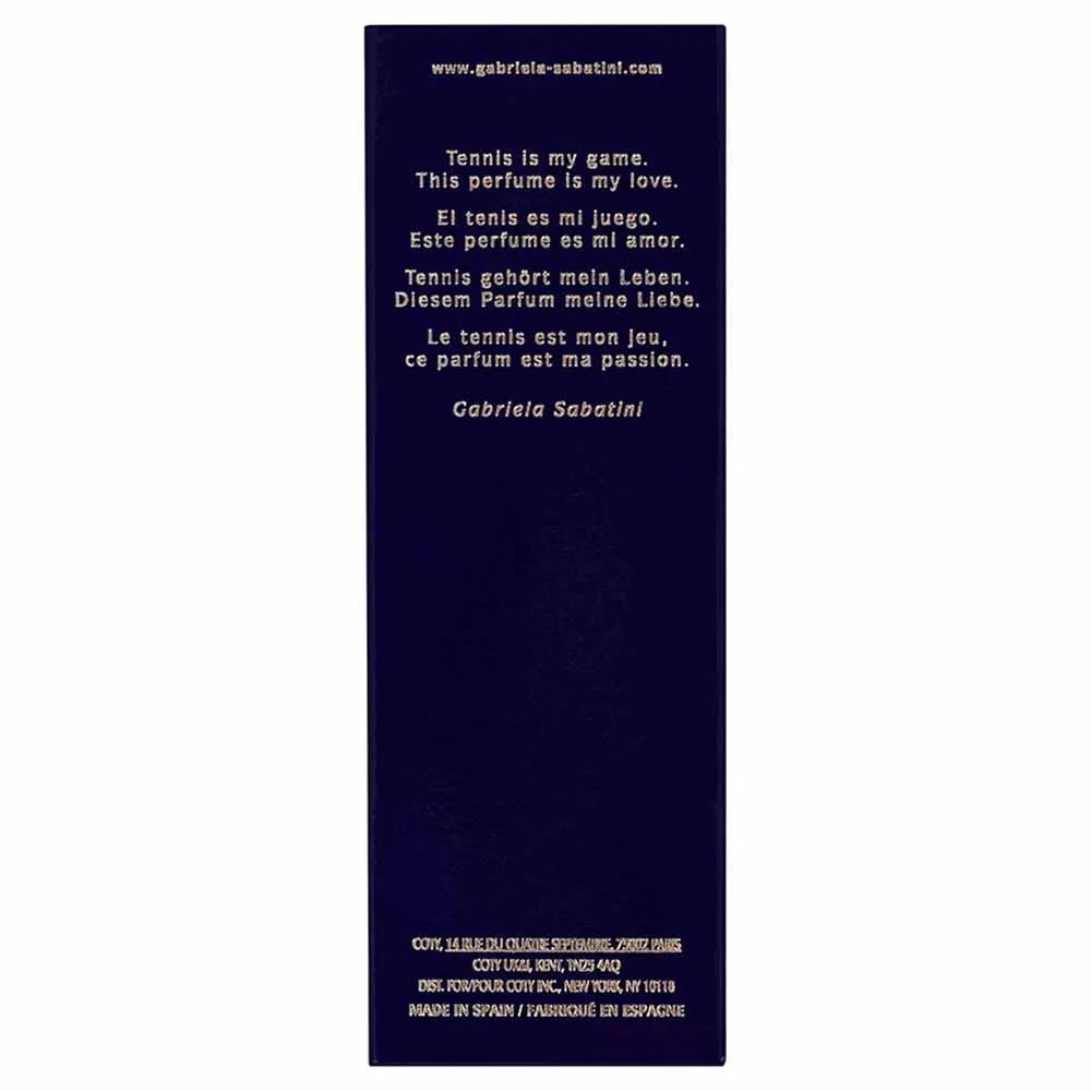 Gabriela Sabatini criou essa fragrância feminina quando estava no auge de sua carreira como tenista, esse lançamento impôs o nome da atleta no mundo da perfumaria com a mesma energia e personalidade com a qual ela enfrentava suas adversárias.