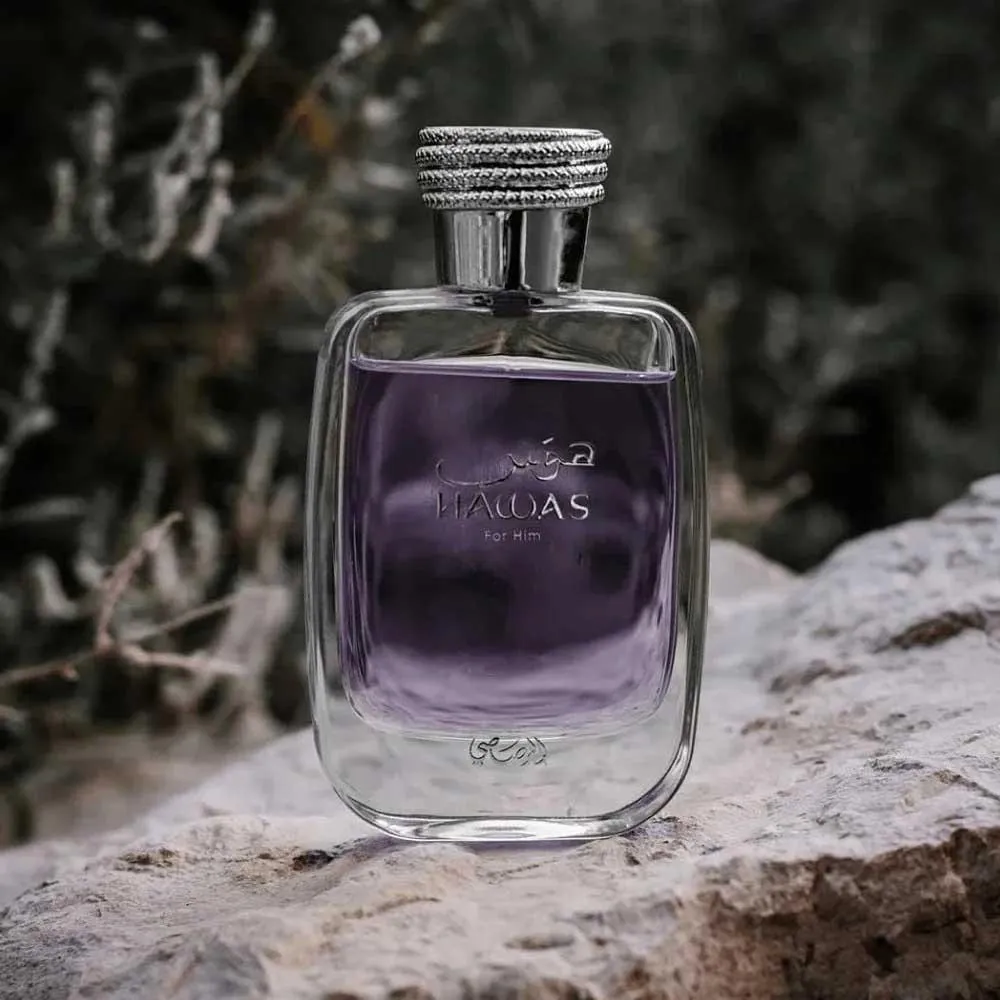 A base é envolvente e duradoura, composta por âmbar cinzento, musk, patchouli e notas amadeiradas quentes. Esses acordes criam um rastro elegante, sensual e marcante, garantindo longa fixação. Hawas For Him é a escolha ideal para homens que buscam um perfume versátil, sofisticado e cheio de presença, ideal tanto para o dia a dia quanto para ocasiões especiais.