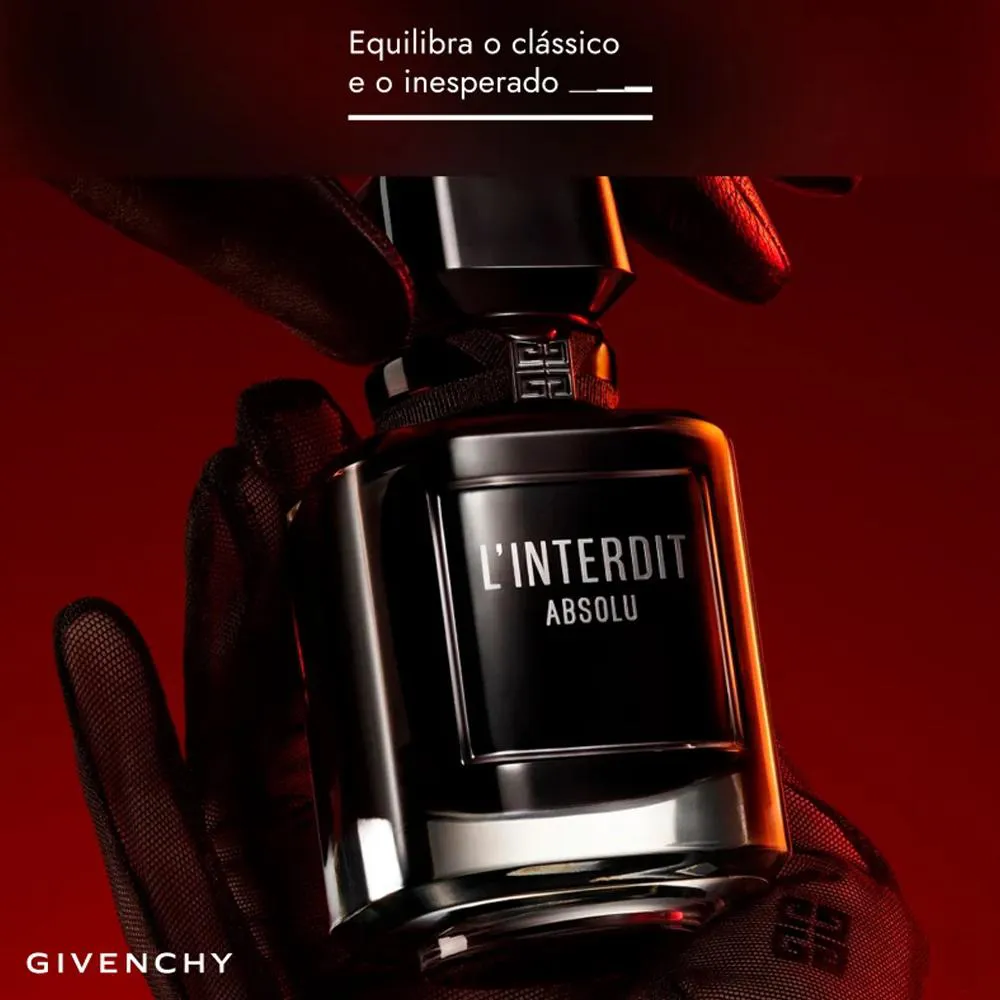 O Perfume L'Interdit Absolu Intense Givenchy EDP Feminino 80ml traz a suavidade das flores e dá lugar a notas amadeiradas robustas, como vetiver e patchouli, conferindo profundidade e uma elegância incomparável.