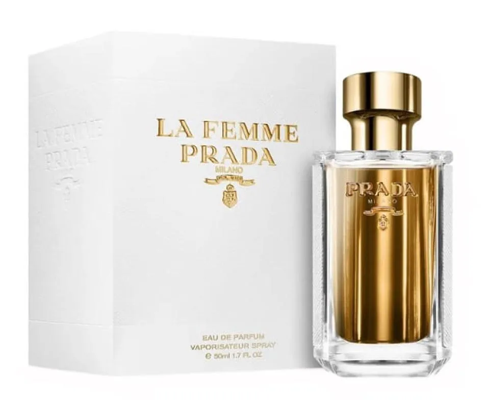 La Femme de Prada é um perfume feminino verdadeiro floral: uma nova forma de criar uma fragrância floral, a flor Frangipani, ligada diretamente ao DNA da marca Prada! Homem e mulher são reunidos em uma mesma visão. Ela pode ser ele, ele pode ser ela. Ela é uma mulher absoluta, ele um homem absoluto. Não existe uma definição óbvia do relacionamento entre eles. Eles podem ser amantes, amigos ou até mesmo estranhos. Ambos possuem múltiplas identidades. Qual o cheiro do perfume Prada La Femme?: O perfume La Femme irradia notas de ylang-ylang picante, suavizadas por cera de abelhas e baunilha. Dá continuidade com notas de jasmin manga, tuberosa, íris e ylang ylang, fechando com notas de vetiver e baunilha. Uma fragrância floral solar e altamente sensual que evoca a carnalidade associada com esta flor distante. Uma fragrância ligada à moda: piso xadrez preto e branco, formas gráficas, colagens e espelho.