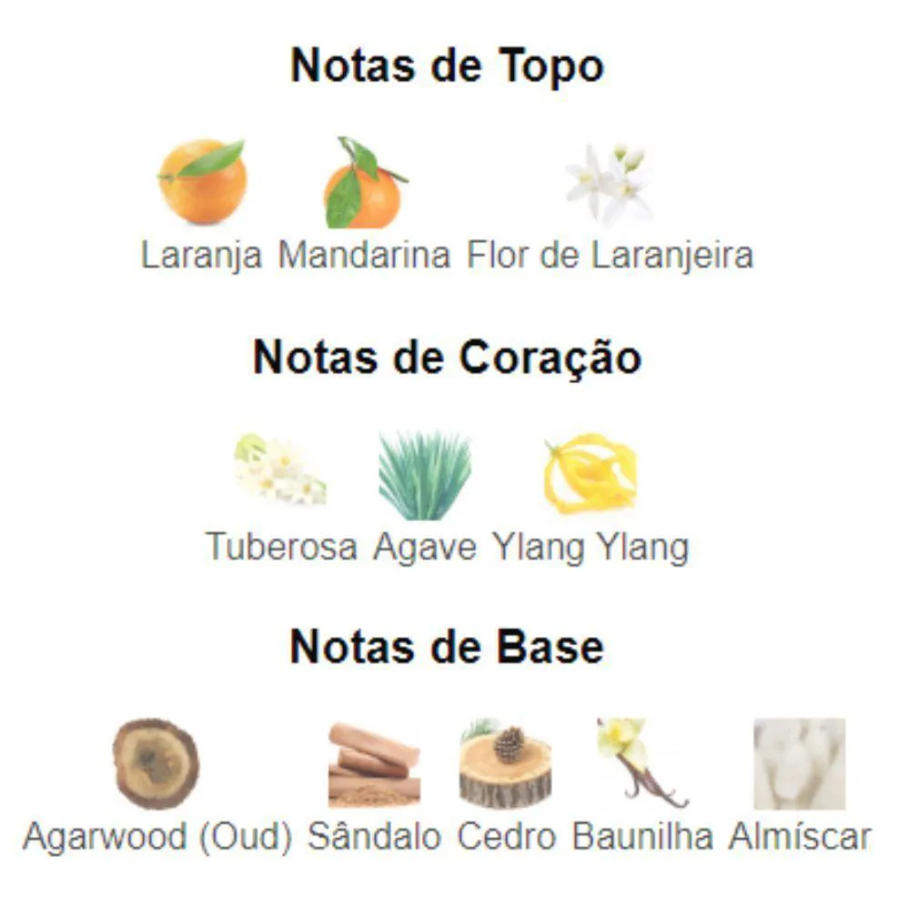 - Combina notas cítricas, florais e quentes.