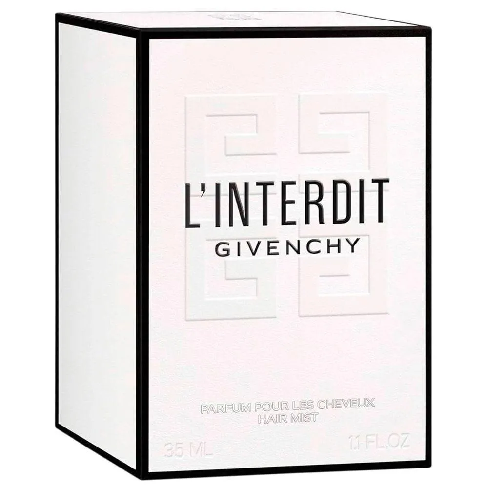 Um perfume para os cabelos com a icônica fragrância L?Interdit, agora em versão Hair Mist.Intensifique o poder da sua fragrância do Perfume para Cabelo L'Interdit Hair Mist Givenchy 35ml e deixe um rastro irresistível de sedução com essa versão exclusiva para os cabelos ? perfeita para os verdadeiros amantes do perfume.O diferencialRedescubra L?Interdit em um novo ritual de beleza com a versão Hair Mist. Um gesto refinado que potencializa a icônica fragrância e complementa sua rotina diária.Com textura leve, essa bruma capilar proporciona um brilho natural e mantém os fios frescos, radiantes e delicadamente perfumados ao longo do dia.Família olfativaFloral AmadeiradoDica de aplicaçãoBorrife L?Interdit Hair Mist por todo o cabelo para um perfume sofisticado e duradouro.Notas Olfativas:Notas de Topo: Pera e Bergamota.Notas de Coração: Flor de Laranjeira, Tuberosa e Jasmim.Notas de Fundo: Patchouli, Vetiver, Baunilha e Ambroxan.*Imagens Meramente Ilustrativas.*As cores do produto podem variar de acordo com o monitor, a iluminação do ambiente e a sua percepção visual.*Verifique nossas políticas internas para que não haja nenhuma dúvida no processo de entrega ao finalizar a compra.