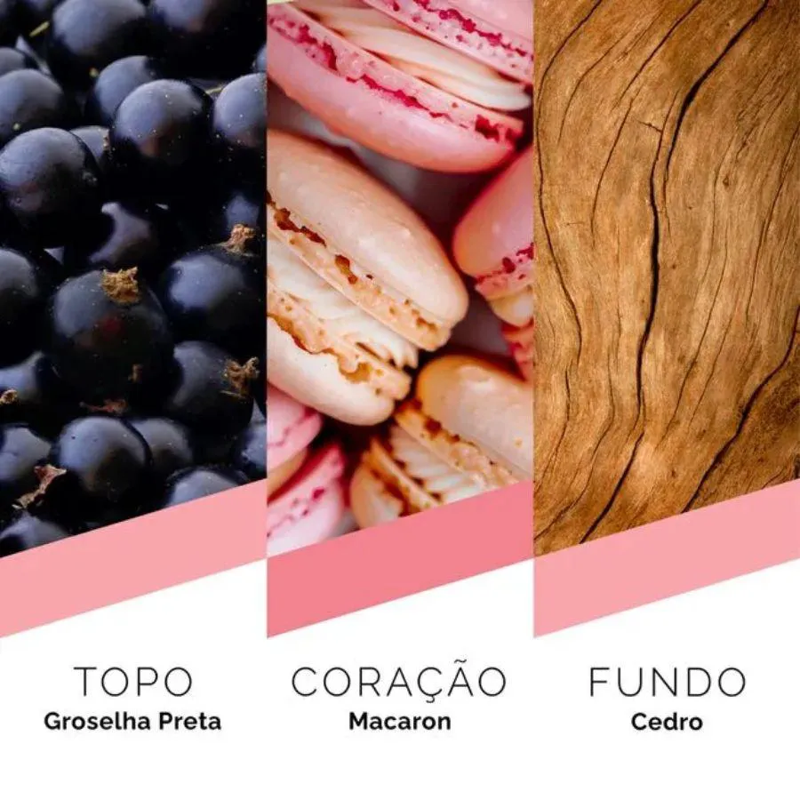 - Notas de rosas, frutas e toque amadeirado.