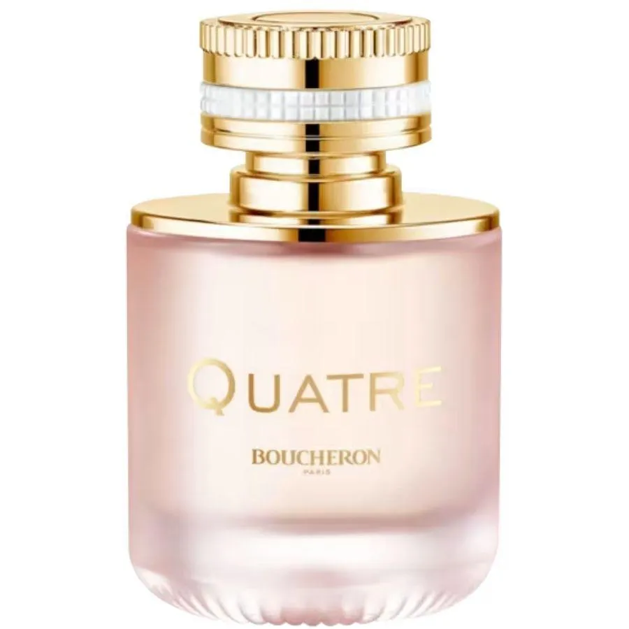 Quatre en Rose Boucheron Eau de Parfum Florale perfume feminino oriental floral. Quatre en Rose Boucheron é como uma joia, com faces de luxo, sensualidade e delicadeza. A fragrância Quatre en Rose de Boucheron , foi inspirada na luxuosa coleção de anéis da casa de joias, mas em uma versão ainda mais poderosa, exaltando a ousadia da mulher decidida, que sabe bem o que quer. Pirâmide Olfativa Topo: Artemísia, Cassis e Tangerina. corpo: Rosa, Jasmim e Flor de Pêssego. Fundo: Patchouli, Vetiver e Almíscar.