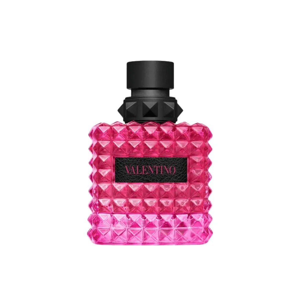 O Frasco: Inspirado no icônico design Rockstud de Valentino, em tom rosa vibrante com detalhes em preto, reflete atitude, sofisticação e modernidade.