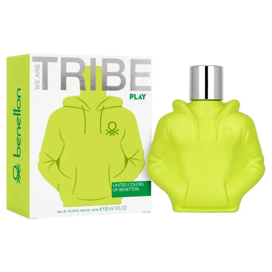 Perfume We are Tribe Play Benetton masculino couro aromático. Fragrância cítrica e vibrante que celebra autenticidade, liberdade e conexão, inspirando confiança e estilo juvenil.