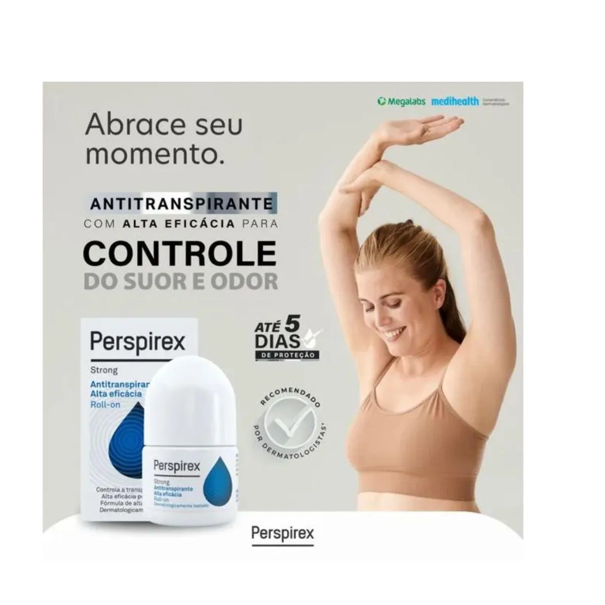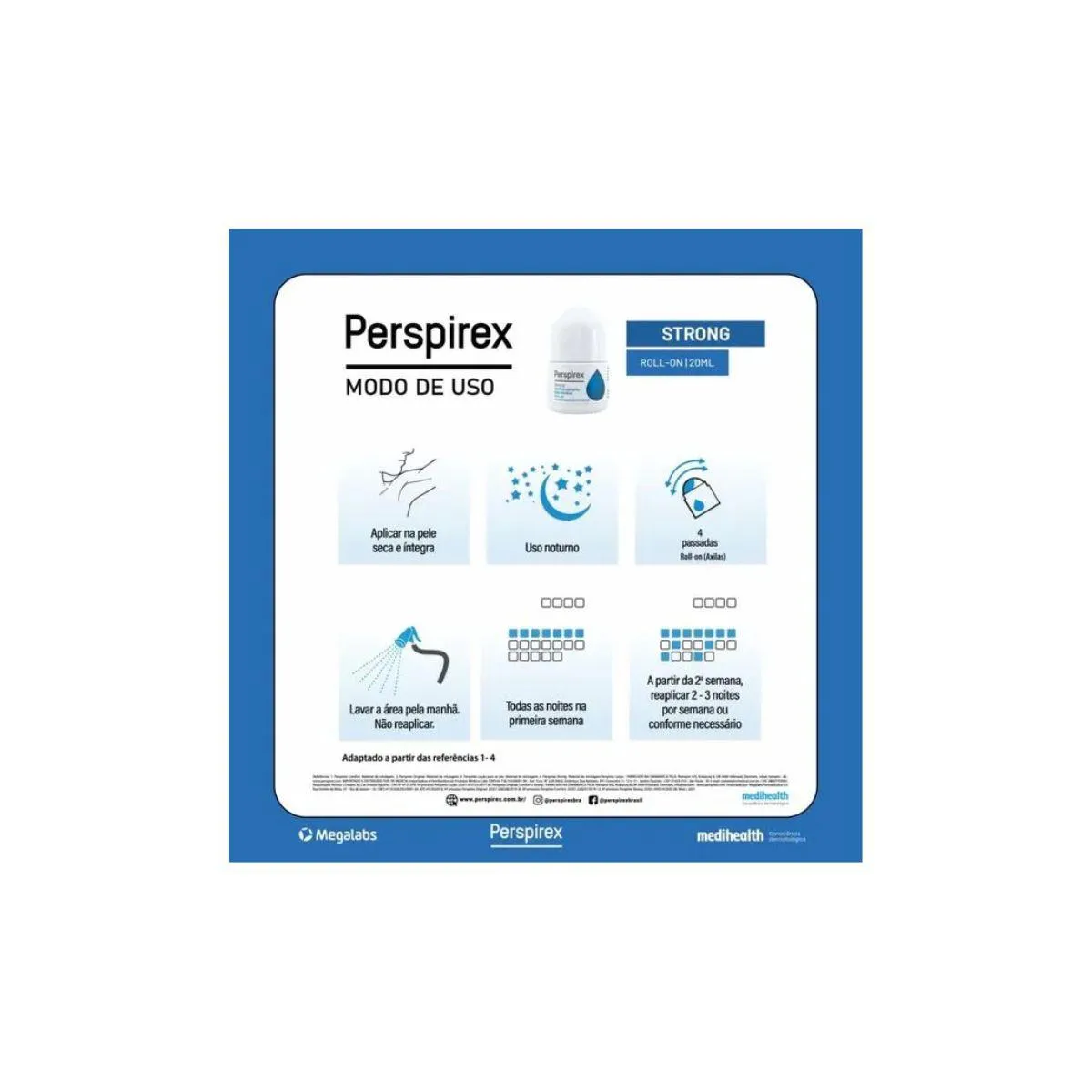 Dermatologicamente testado, ele também minimiza a irritação que geralmente ocorre em antitranspirantes à base de cloreto de alumínio. Benefícios e diferenciais do desodorante Perspirex Strong antitranspirante roll-on Fórmula que minimiza a irritação. Ideal mesmo para as peles mais delicadas.
