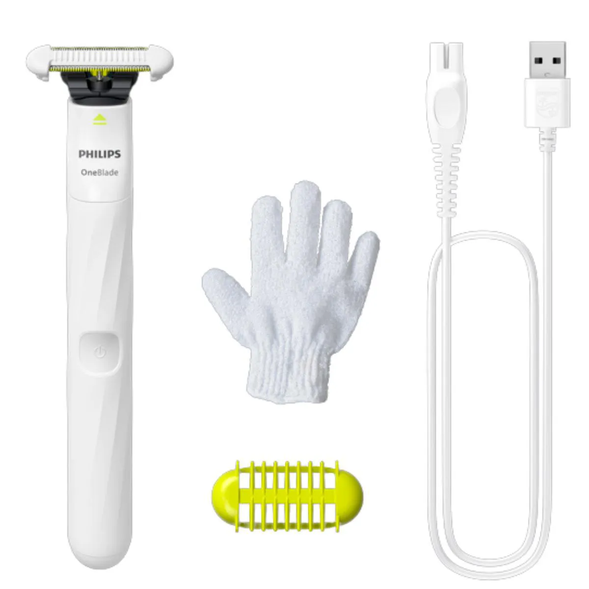 Depilador Philips OneBlade Íntimo 1 unidade de lâmina Skin Protect + 1 pente corporal 3mm + 1 luva de esfoliação