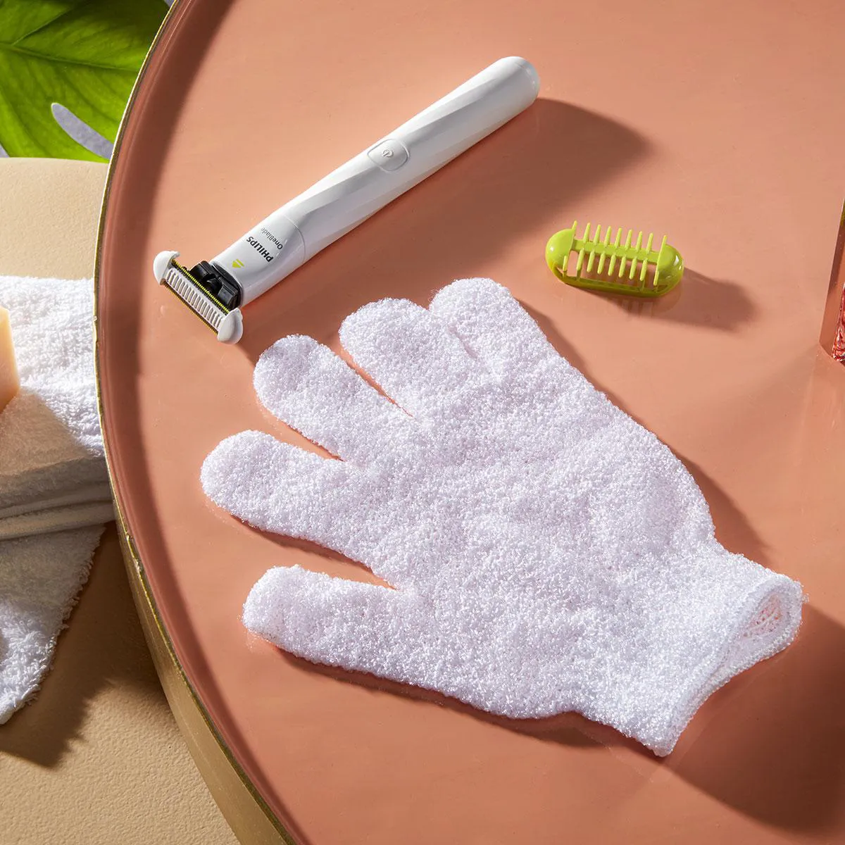 - 1 luva esfoliante para suavizar a pele e prevenir pelos encravados.