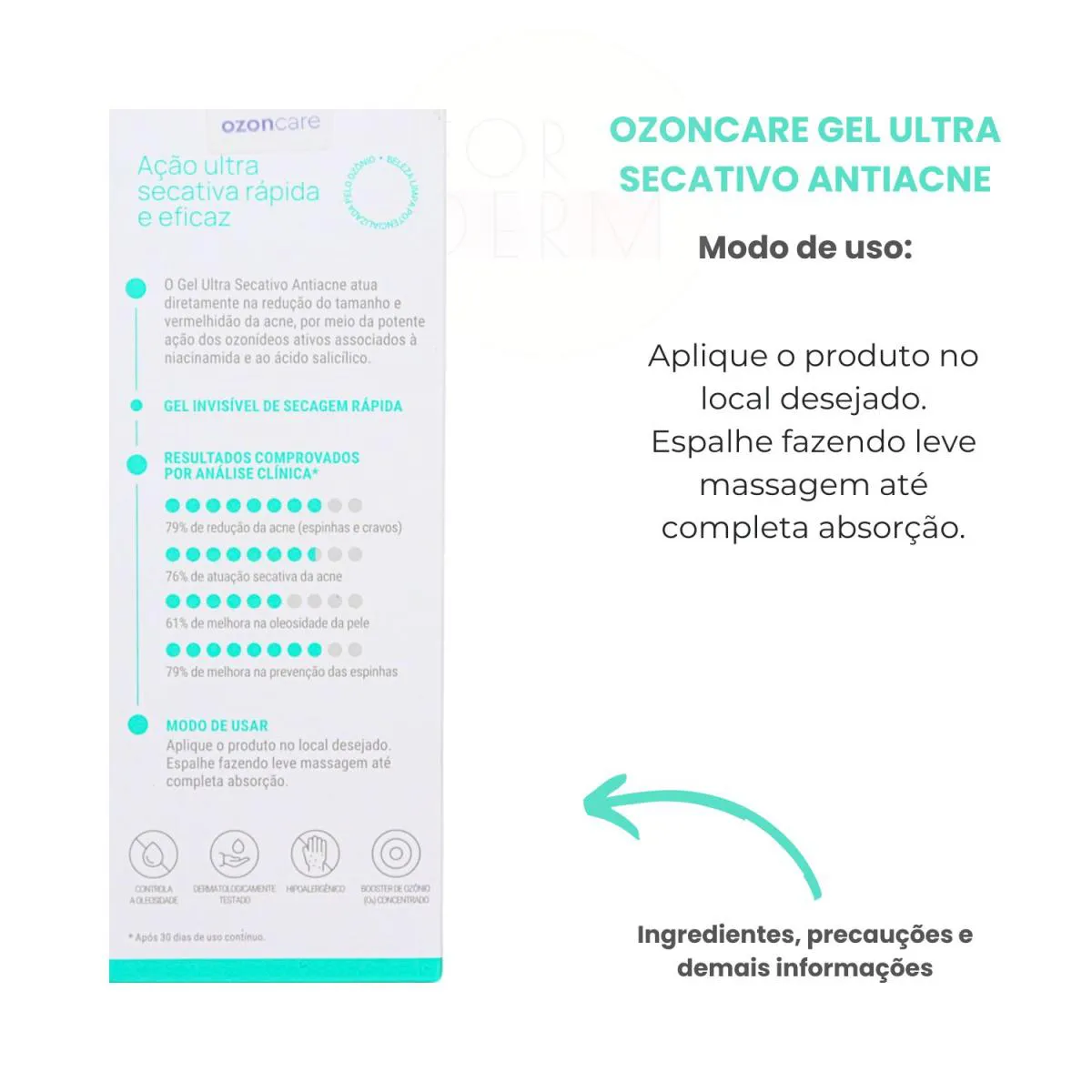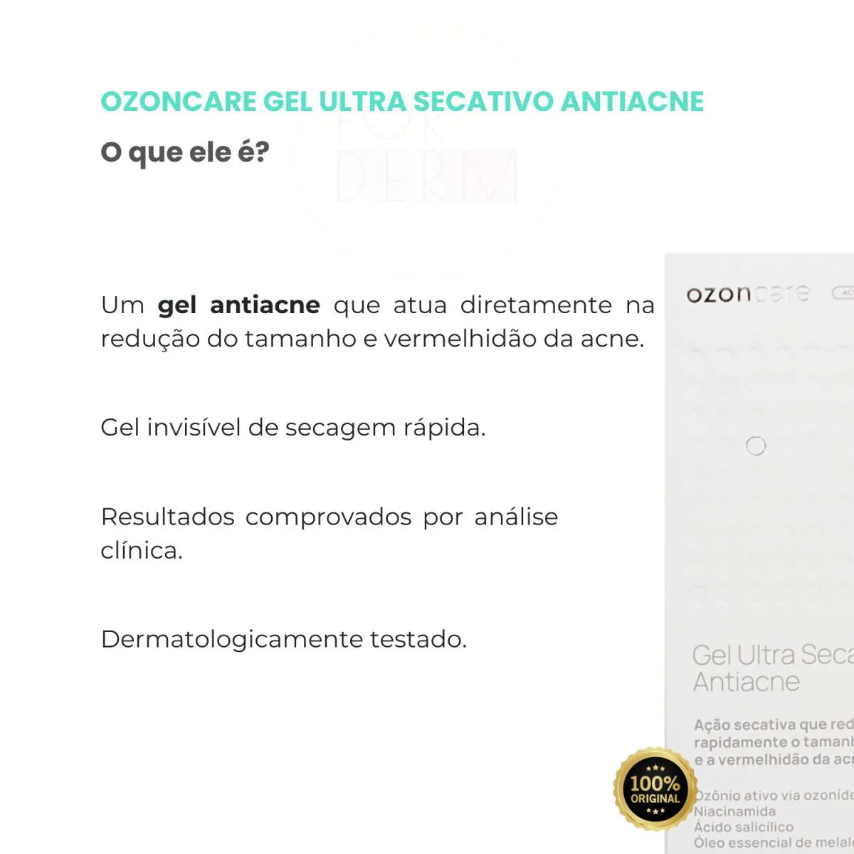 O Philozon Ozoncare Gel Ultra Secativo Contra Acne é um gel antiacne formulado com ativos específicos para tratamento de pele com acne. Serve para reduzir o tamanho e a vermelhidão das lesões acneicas, atuando diretamente sobre as áreas afetadas para melhorar a aparência da pele.