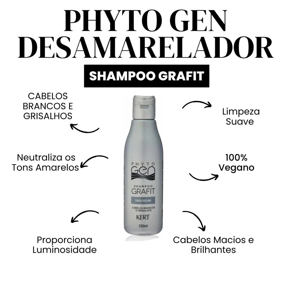 O Shampoo Grafit acentua e realça a tonalidade cinza escuro nos cabelos brancos ou grisalhos, deixando-os macios e brilhantes. Seu efeito é gradual, a cor fica mais intensa com a continuidade das aplicações. Ele pode ser alternado com o seu shampoo habitual.