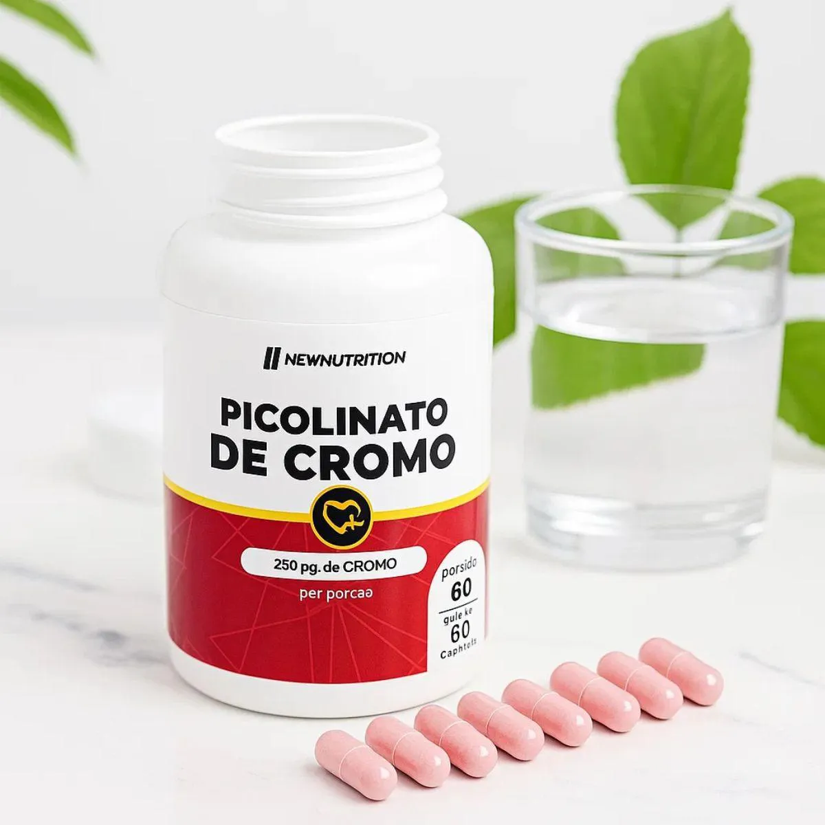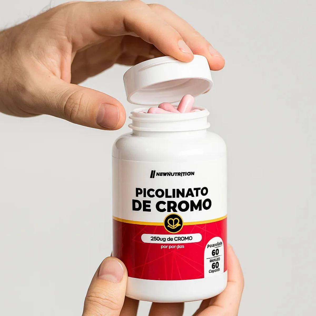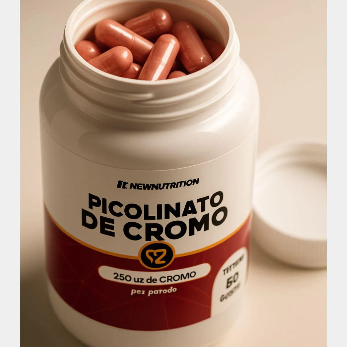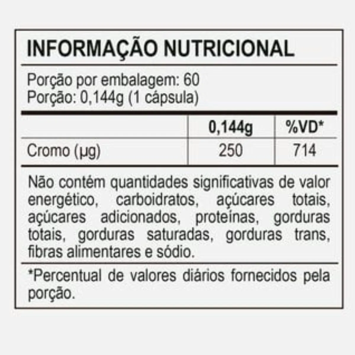 Picolinato de Cromo 250ug 60 Capsulas New Nutrition versão com 250 µg de cromo por cápsula, em frasco com 60 unidades, destinada a quem necessita de aporte maior.