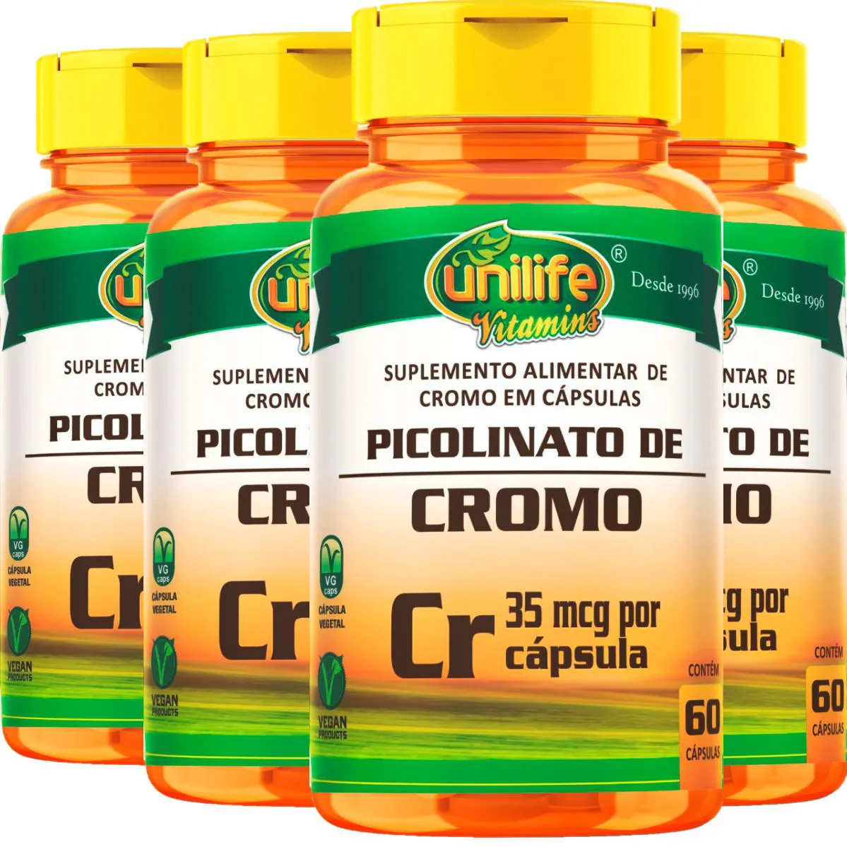 Picolinato de Cromo 500Mg 60 Capsulas - Unilife - Quatro Unidades