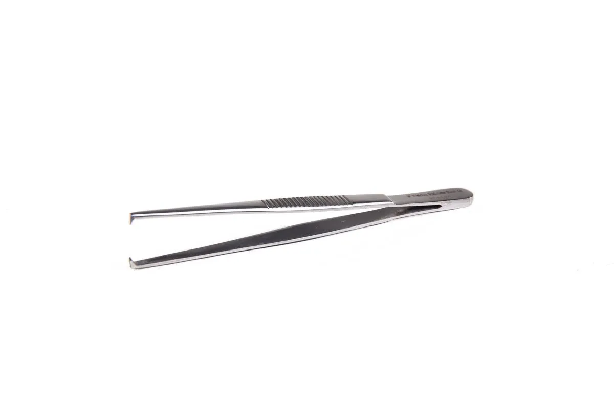 - Ponta em formato de dente de rato, ideal para apreensão delicada de tecidos ou materiais.