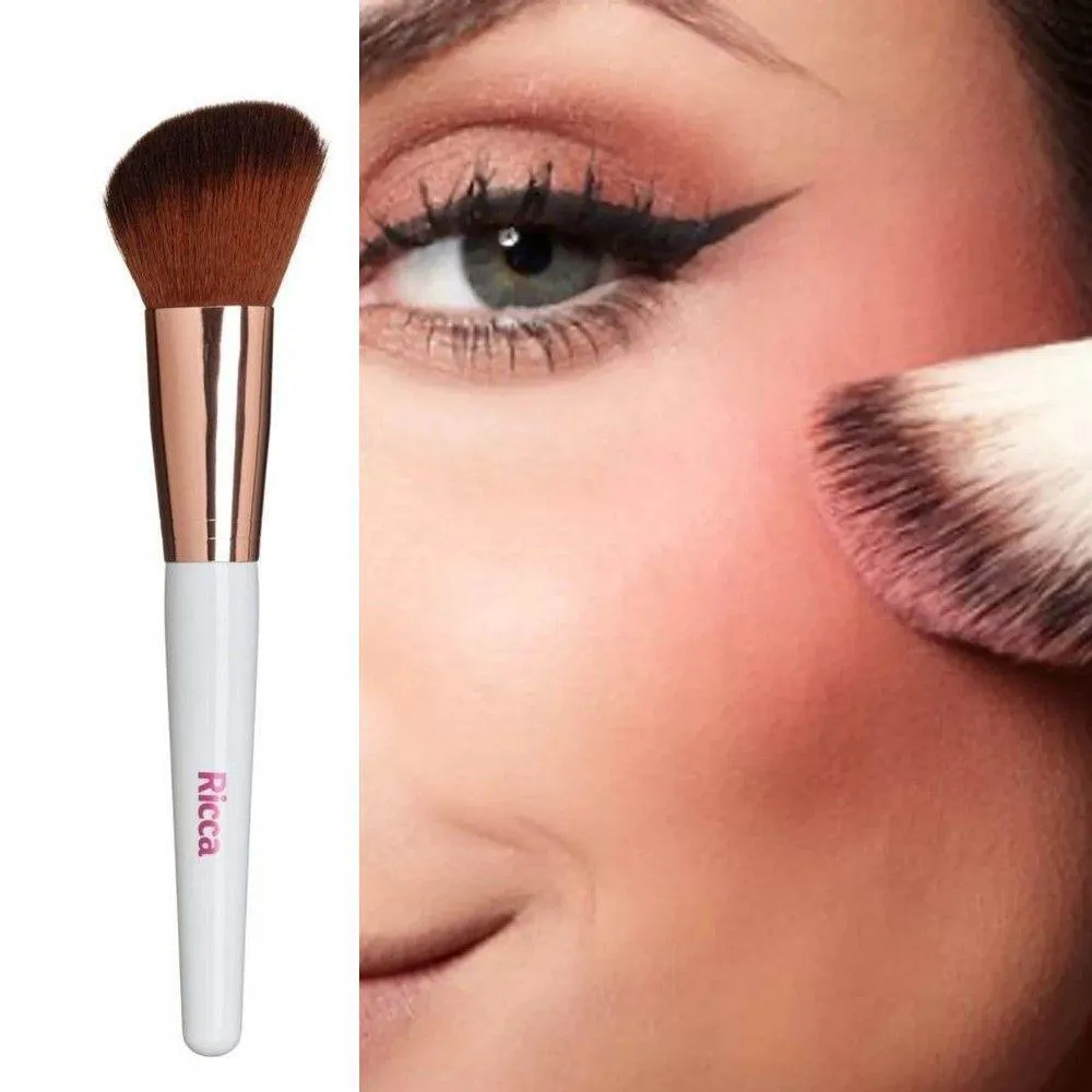 Pincel Chanfrado para Blush Make Me Glam Rose Gold Ricca